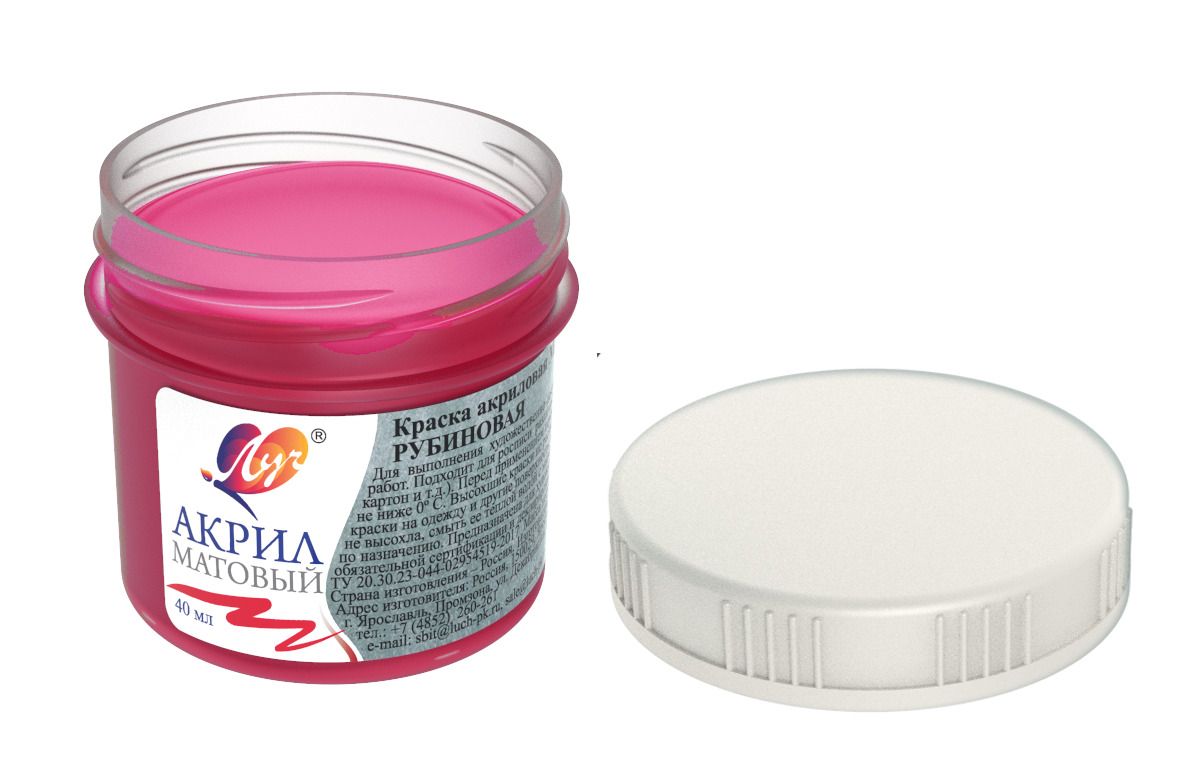 Объем, мл: 40 Количество цветов: 1 Наличие европодвеса: Нет Цвет: рубиновая Спецэффекты: матовый Тип товара: художественные Мин. партия и варианты упаковок: 1 / 30 Краска акриловая художественная Луч МАТОВАЯ 40 мл рубиновая