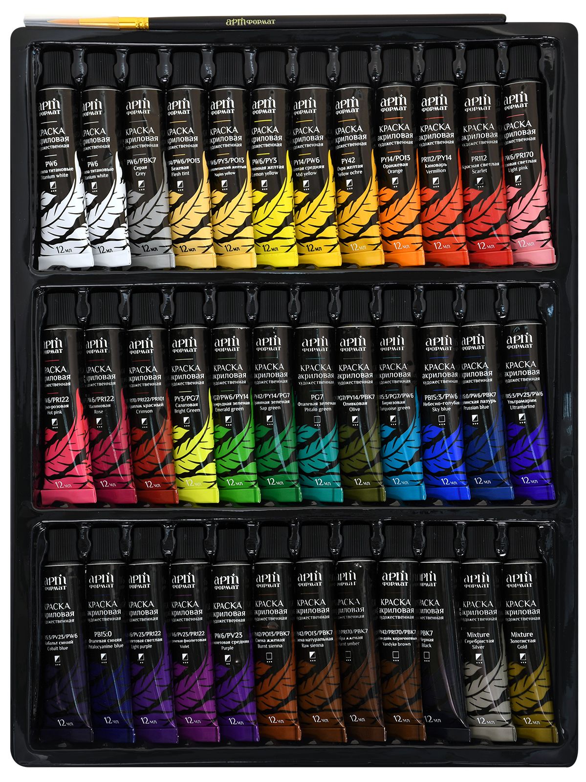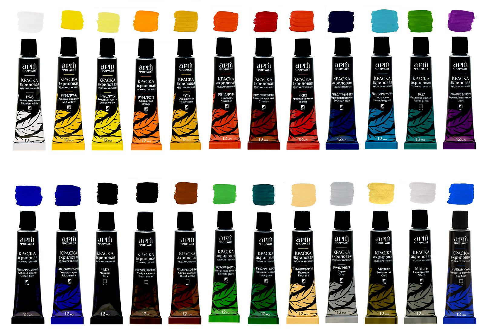 Объем, мл: 22 Количество цветов: 12 Наличие европодвеса: Нет Цвет: ассорти Упаковка: картонная упаковка Тип товара: художественные Мин. партия и варианты упаковок: 1 / 16 Краски акриловые художественные АРТформат 12 цветов по 22 мл ассорти