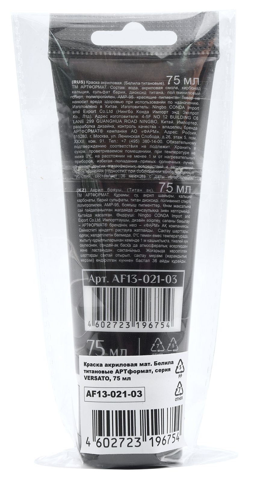 Объем, мл: 75 Количество цветов: 1 Наличие европодвеса: Да Цвет: Белила титановые Упаковка: пластиковая упаковка Тип товара: художественные Мин. партия и варианты упаковок: 1 / 100 -