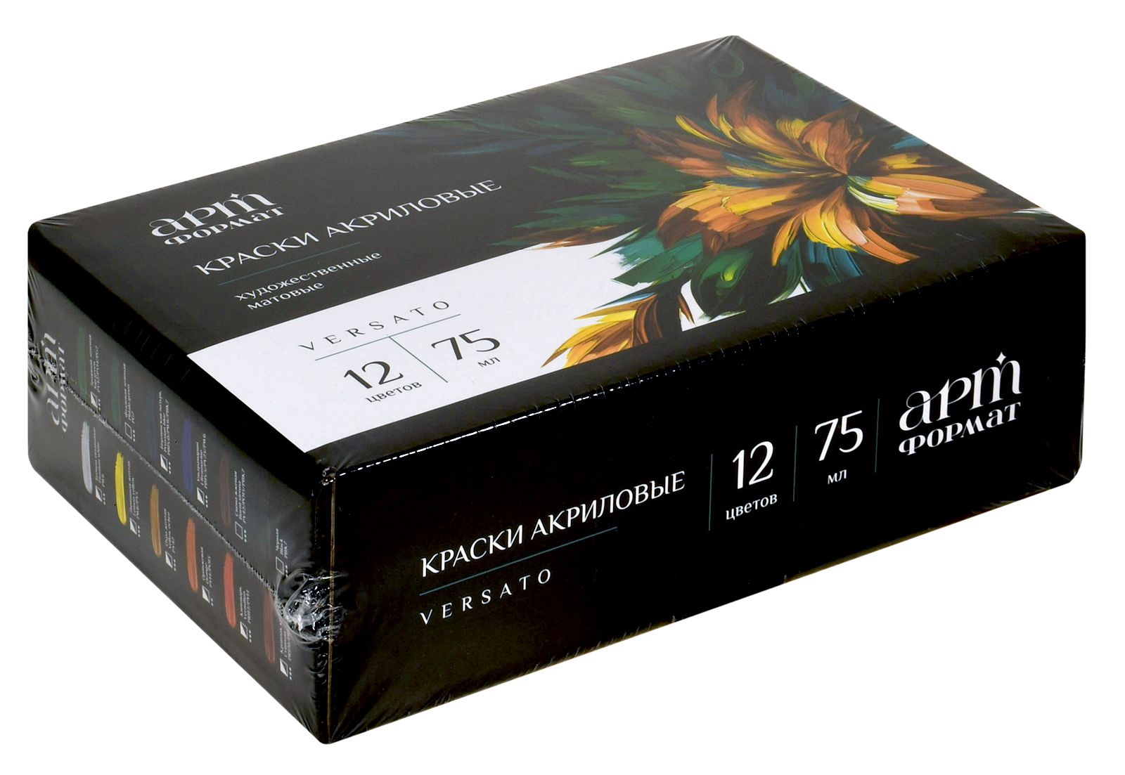 Объем, мл: 75 Количество цветов: 12 Наличие европодвеса: Нет Цвет: ассорти Упаковка: коробка из микрогофрокартона Тип товара: художественные Мин. партия и варианты упаковок: 1 / 8 Краски акриловые художественные АРТформат VERSATO 12 цветов по 75 мл ассорти, коробка из микрогофрокартона