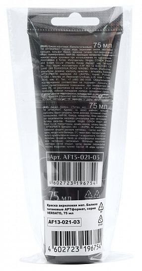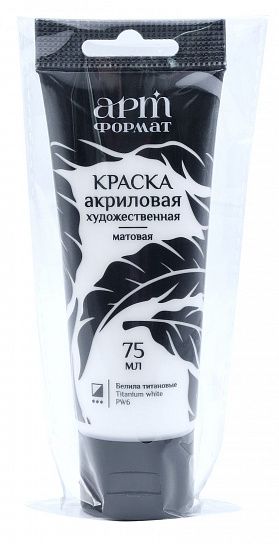 Классика, без которой не обойтись! Матовая акриловая краска ""Белила титановые"" от АРТформат в пластиковой тубе 75 мл. Чистый цвет, высокое качество - идеально для создания ярких акцентов и высветления тонов. Все, что нужно для создания идеального полотна.