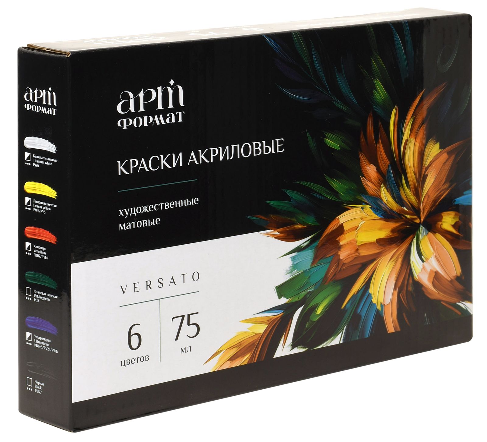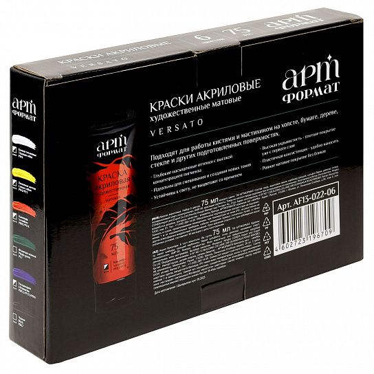 Впечатляющий набор акриловых красок для настоящих художников! В наборе серии VERSATO 6 цветов по 75 мл, матовые, глубокие оттенки. Удобная упаковка - пластиковые-тубы и коробка.