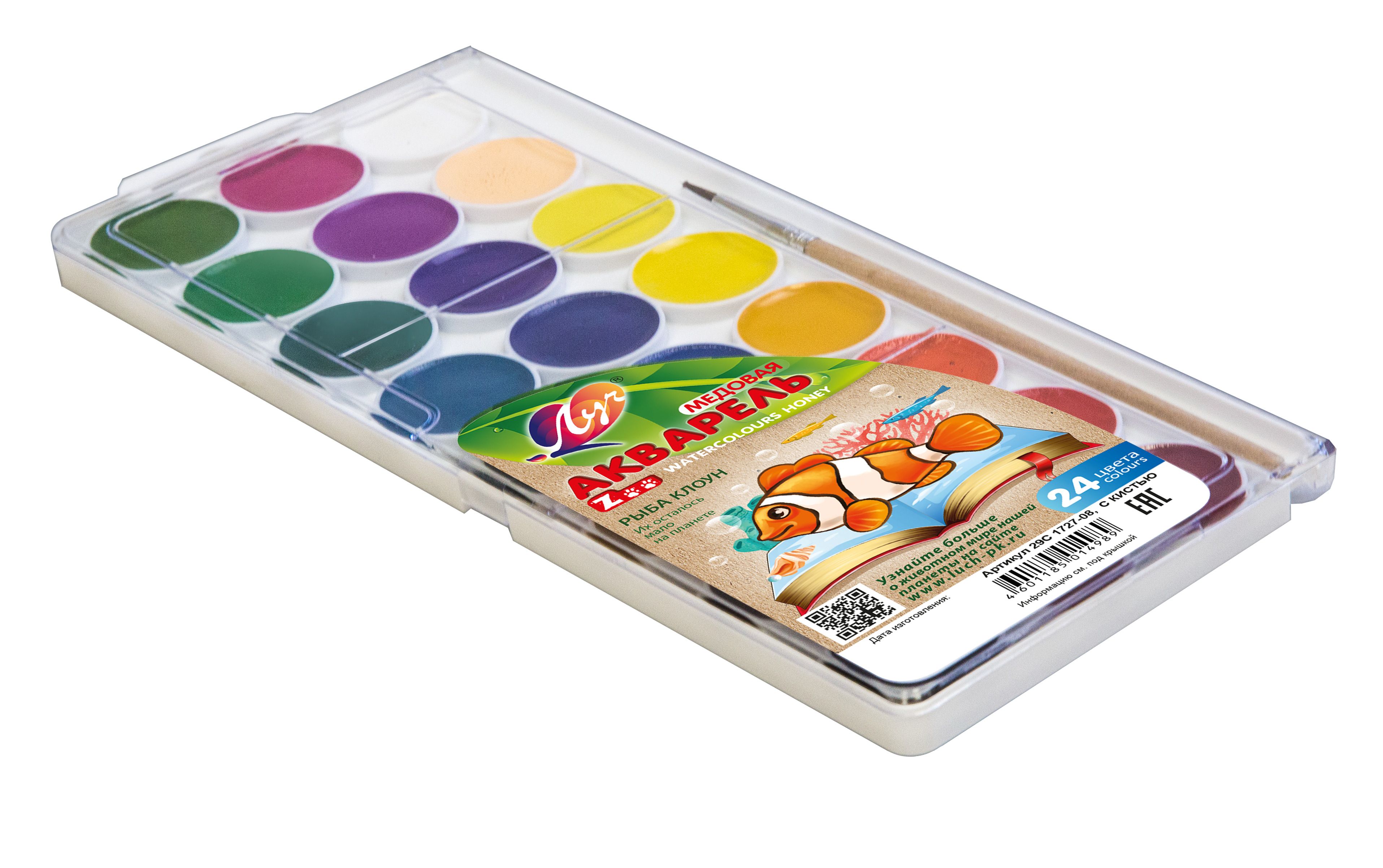 Количество цветов: 12 Наличие европодвеса: Да Упаковка: пластиковая упаковка Наличие кисти: с кистью Тип товара: детские Серия: КЛАССИКА Мин. партия и варианты упаковок: 1 / 48 Акварель Луч КЛАССИКА 12 цветов, с кистью, пластиковая упаковка с европодвесом