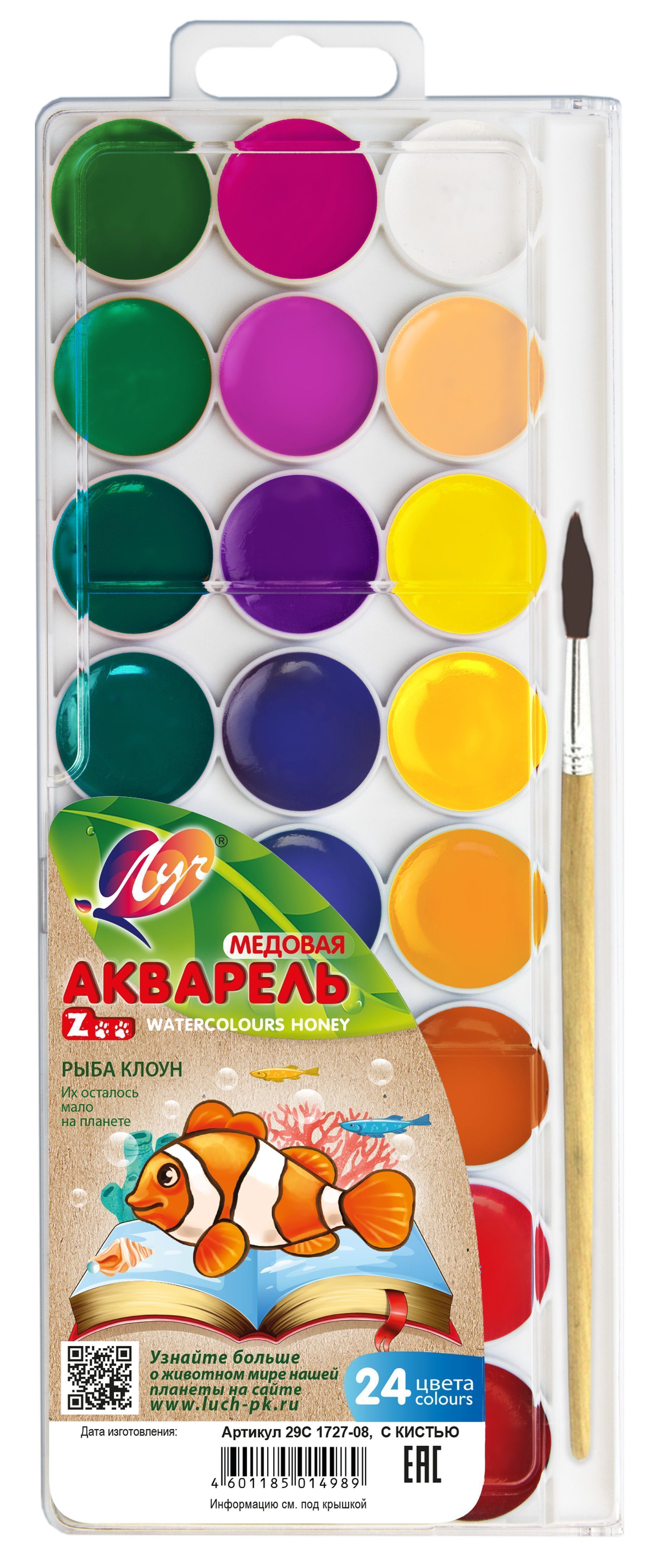 Количество цветов: 24 Наличие европодвеса: Да Упаковка: пластиковая упаковка Наличие кисти: с кистью Тип товара: детские Серия: КЛАССИКА Мин. партия и варианты упаковок: 1 / 21 Акварель Луч КЛАССИКА 24 цвета, с кистью, пластиковая упаковка с европодвесом