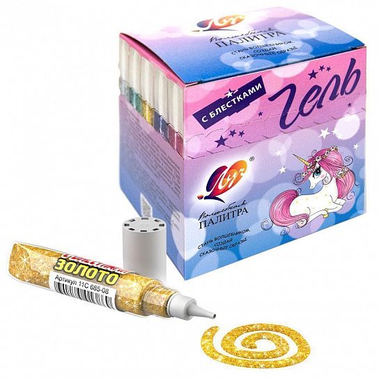 Цвет: золотой Объем, мл: 5 Количество цветов: 1 Наличие европодвеса: Нет Торговая марка: Луч Мин. партия и варианты упаковок: 1 / 360 Гель с блестками Луч золото 5 мл