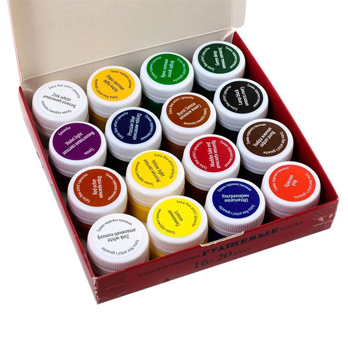 Количество цветов: 16 Тип товара: художественные Емкость: набор баночек Цвет: ассорти Серия: МАСТЕР КЛАСС Объем, мл: 20,00 Мин. партия и варианты упаковок: 1 / 8 -