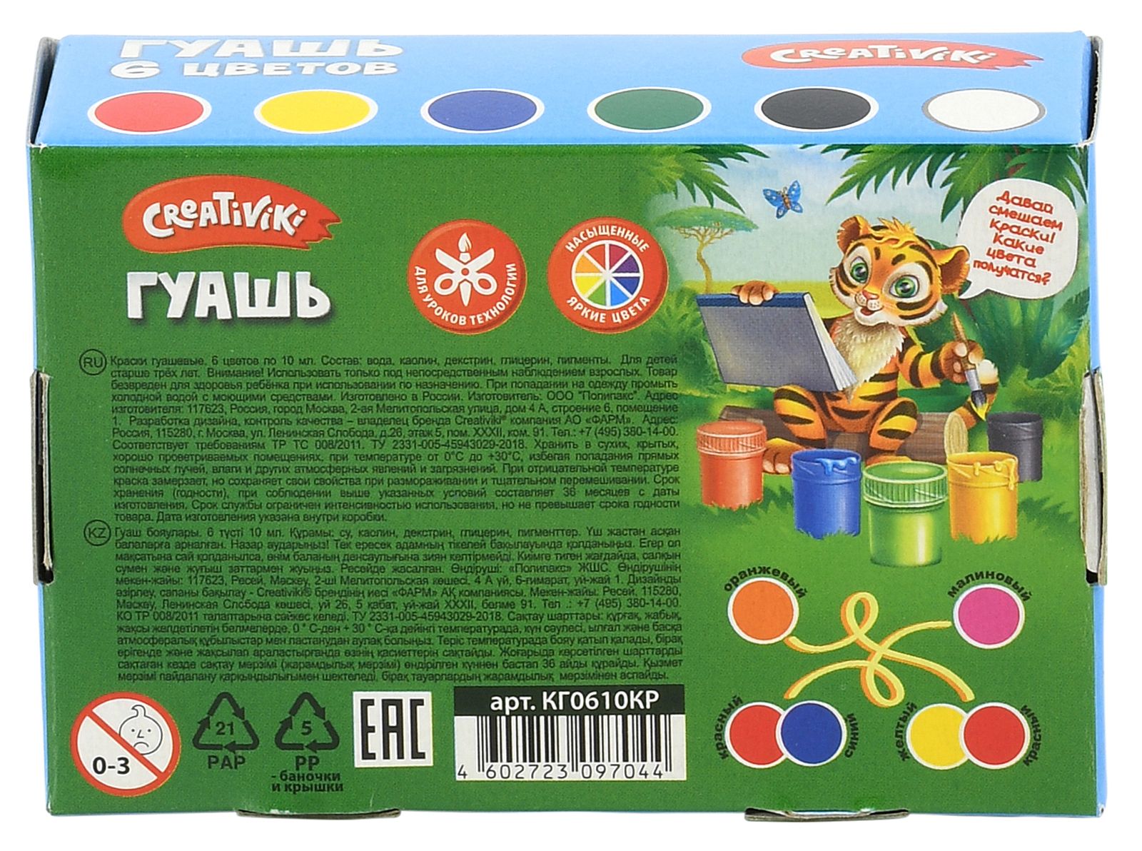 Гуашевые краски – прекрасный материал для начинающих художников! Гуашь Creativiki проста в использовании и прекрасно подходит как деткам, которые только учатся рисовать, так и опытным маленьким художникам. Рисование гуашевыми красками позволит с лёгкостью освоить другие материалы для рисования.