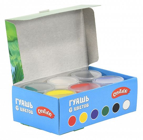 Гуашевые краски — один из любимых детских материалов для рисования. Обладая высокой пигментированностью и сочностью цветов, краски Creativiki невероятно комфортны в использовании: они обладают хорошей укрывистостью. Яркие и красивые гуашевые краски имеют самый популярный объем — 20 мл. Каждая баночка плотно закрывается завинчивающейся крышкой.