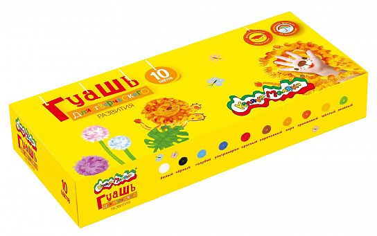 Гуашь Каляка-Маляка® предназначена для детского творчества. Отлично подходит в качестве первого материала для обучения рисованию. Имеет оптимальное цветовое сочетание, обладает хорошей насыщенностью и чистотой тона. Отличается прекрасной кроющей способностью. При необходимости разбавляется водой.