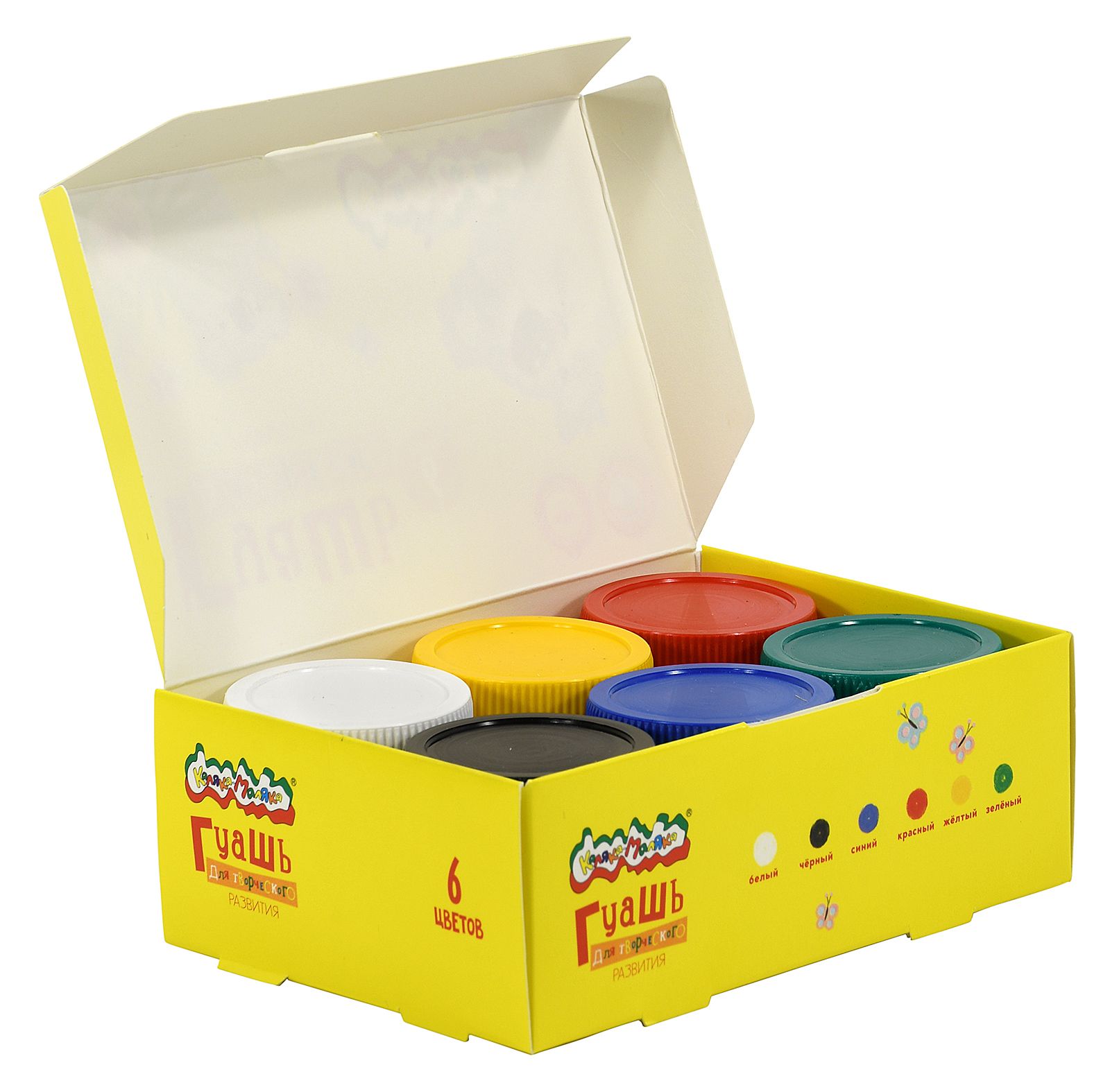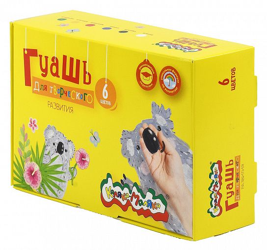 Гуашь Каляка-Маляка® предназначена для детского творчества. Отлично подходит в качестве первого материала для обучения рисованию. Имеет оптимальное цветовое сочетание, обладает хорошей насыщенностью и чистотой тона. Отличается прекрасной кроющей способностью. При необходимости разбавляется водой.