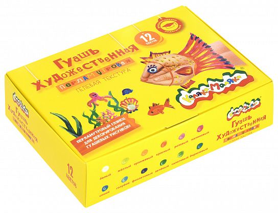 Гуашь Каляка-Маляка ГЕЛЕВАЯ ТЕКСТУРА 12 цветов по 22 мл ассорти перламутр, банка