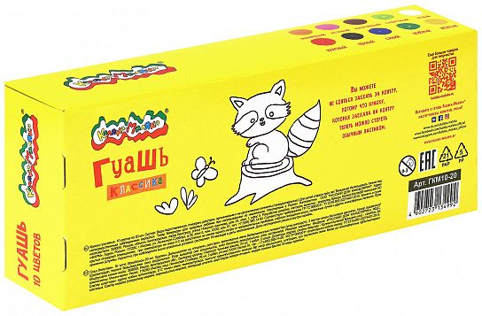 Гуашь Каляка-Маляка® КЛАССИКА предназначена для детского творчества. Отлично подходит в качестве первого материала для обучения рисованию. Имеет оптимальное цветовое сочетание, обладает хорошей насыщенностью и чистотой тона. Отличается прекрасной кроющей способностью. При необходимости разбавляется водой.