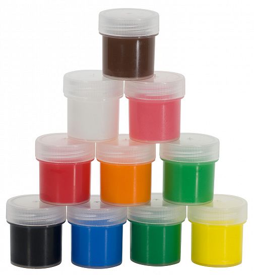 • Гуашь находится в пластиковых герметичных баночках с завинчивающейся прозрачной крышкой.