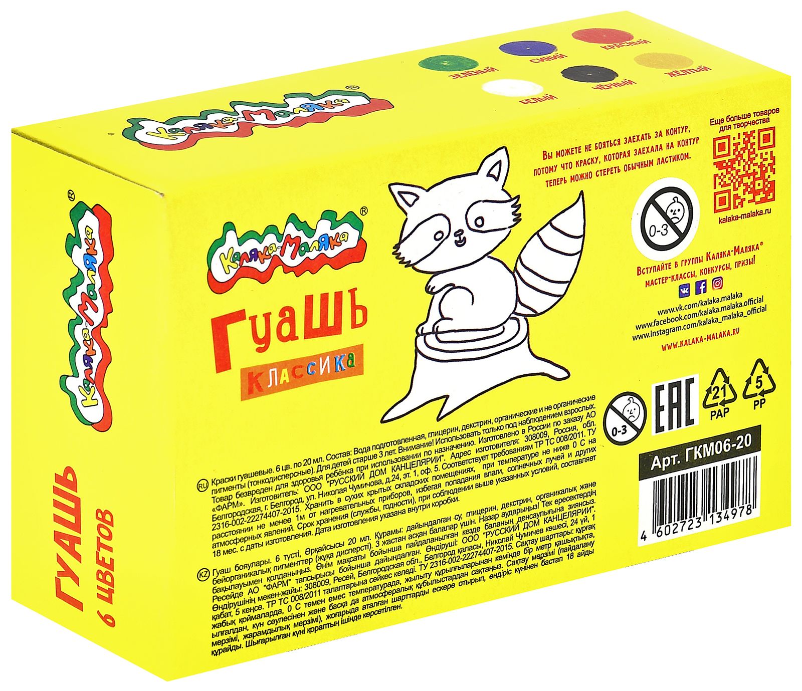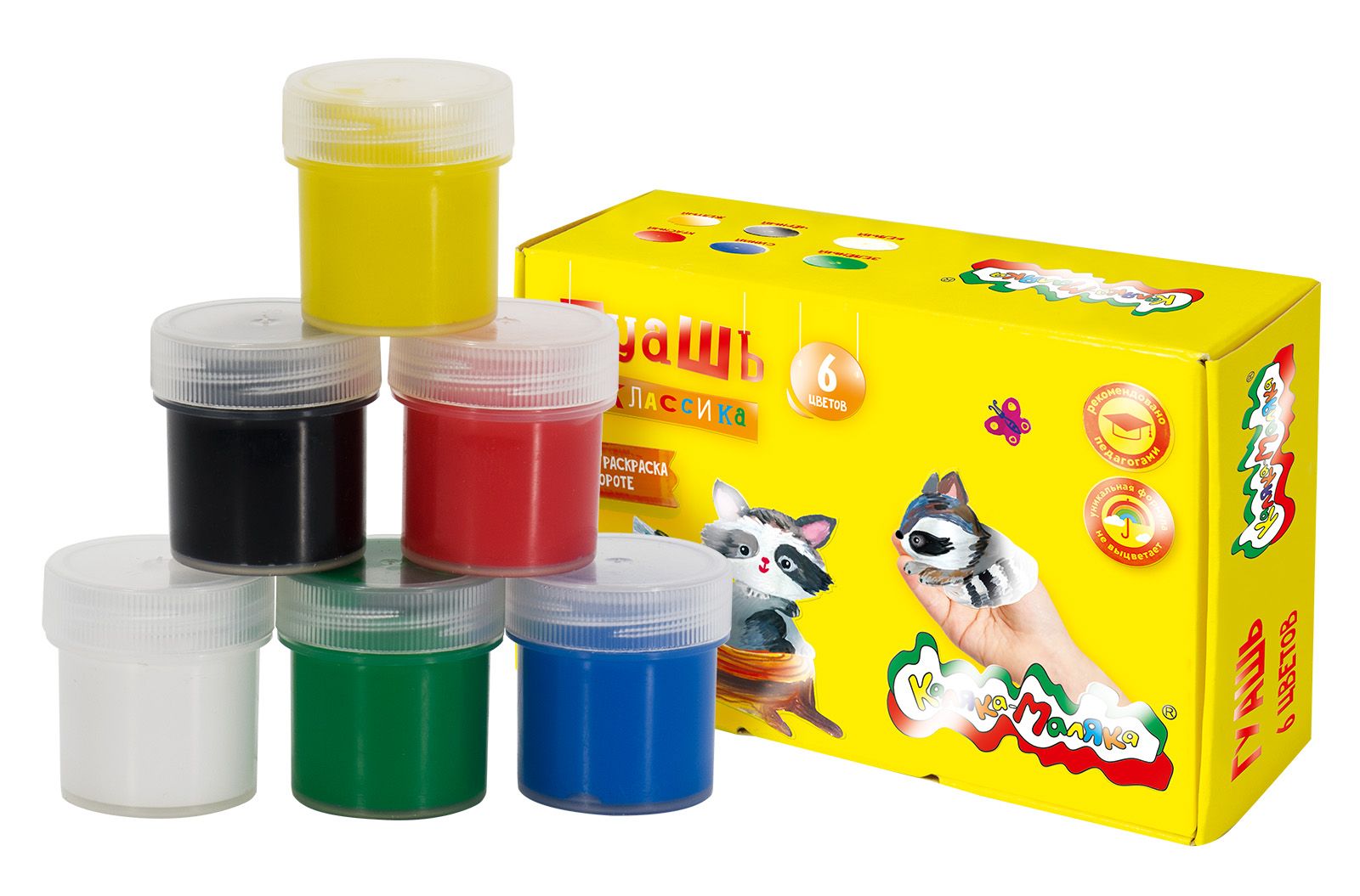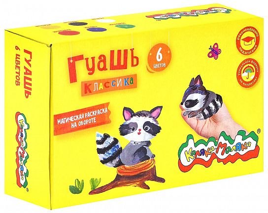 Гуашь Каляка-Маляка® КЛАССИКА предназначена для детского творчества. Отлично подходит в качестве первого материала для обучения рисованию. Имеет оптимальное цветовое сочетание, обладает хорошей насыщенностью и чистотой тона. Отличается прекрасной кроющей способностью. При необходимости разбавляется водой.