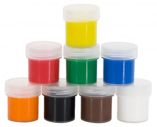 • Гуашь находится в пластиковых герметичных баночках с завинчивающейся прозрачной крышкой.