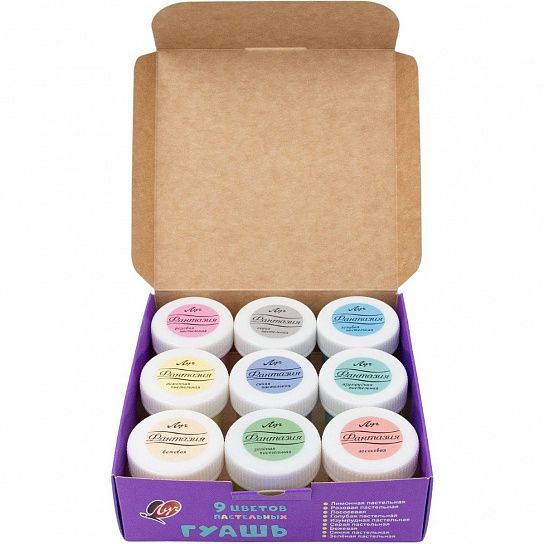 Набор гуашевых красок пастельных цветов для создания нежных рисунков и композиций. У гуаши высокая кроющая способность, равномерная текстура, чистые и насыщенные цвета. Она замечательно размывается водой, быстро сохнет и легко смывается с рук. По мере высыхания краски не меняют цвет, образуя матовую бархатистую поверхность. Гуашь пастельных цветов подходит не только для детских работ, но и для серьёзных художественных проектов.