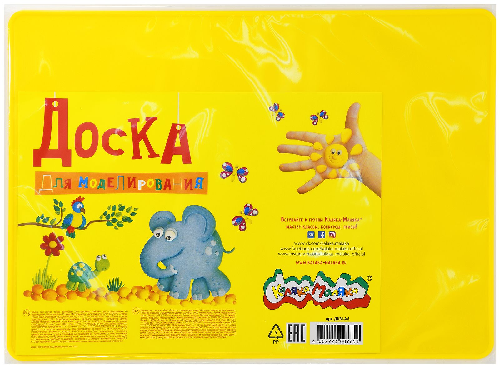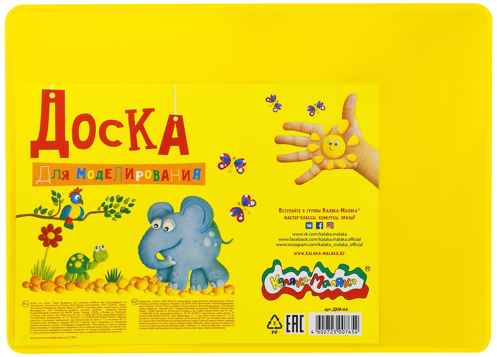 Формат: А4 Цвет: желтый Размер: 27,8х19,8 см Вид материала для творчества: Доска для лепки Материал: пластик Наличие принта: Нет Мин. партия и варианты упаковок: 1 / 40 Доска для моделирования Каляка-Маляка А4 из пластика 3+