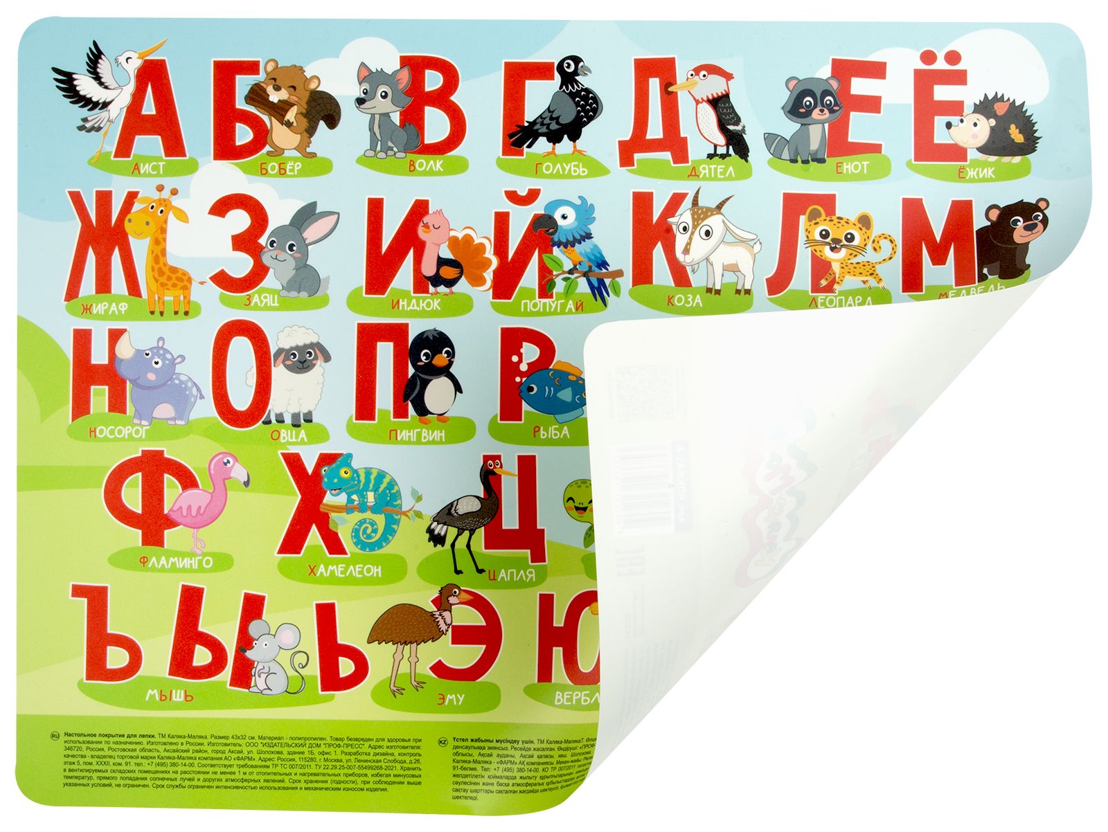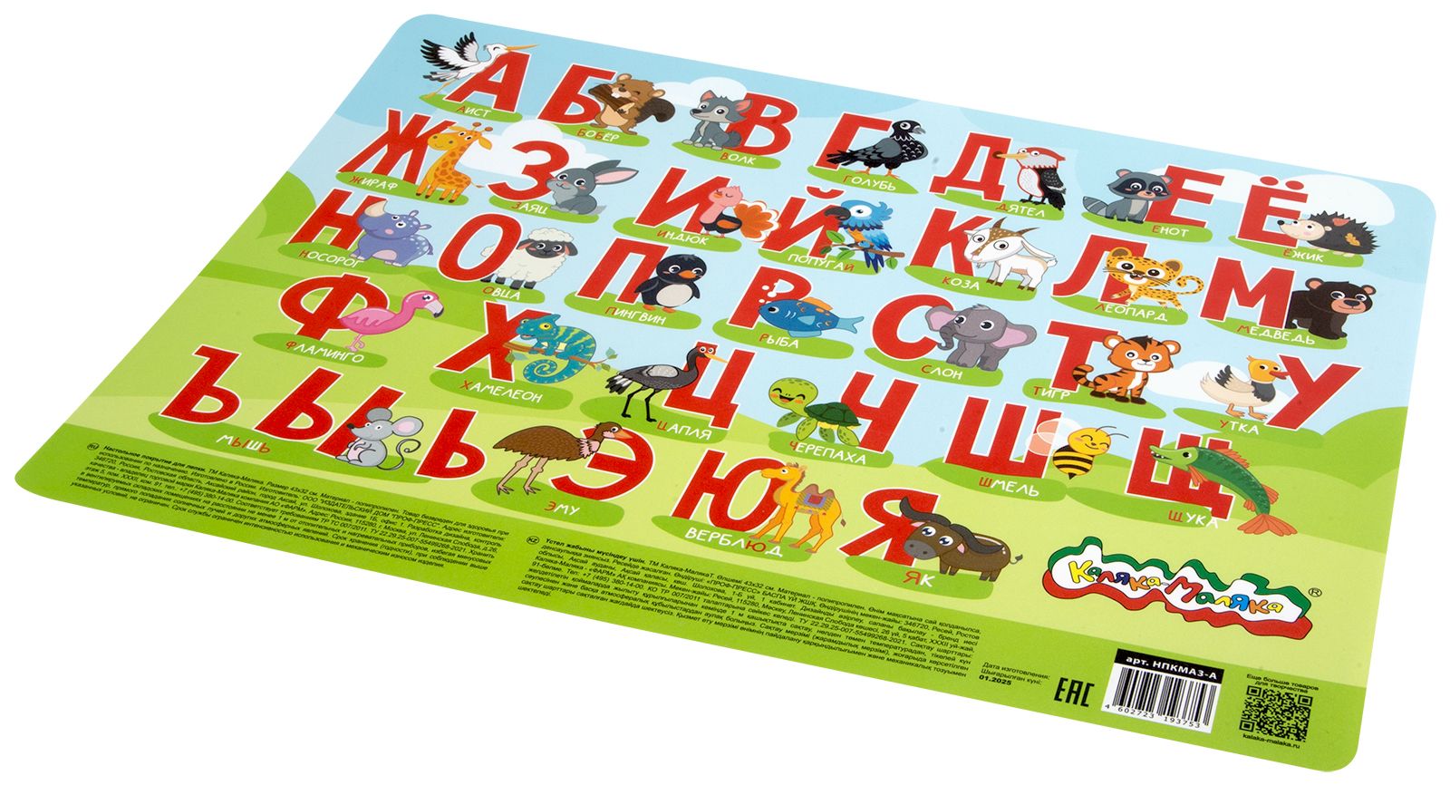 Формат: нет Цвет: зеленый Размер: 43х32 см Вид материала для творчества: Настольное покрытие для детского творчества Материал: пластик Наличие принта: Да Мин. партия и варианты упаковок: 1 / 10 Настольное покрытие для детского творчества Каляка-Маляка АЛФАВИТ 43х32 см пластик зеленый с принтом