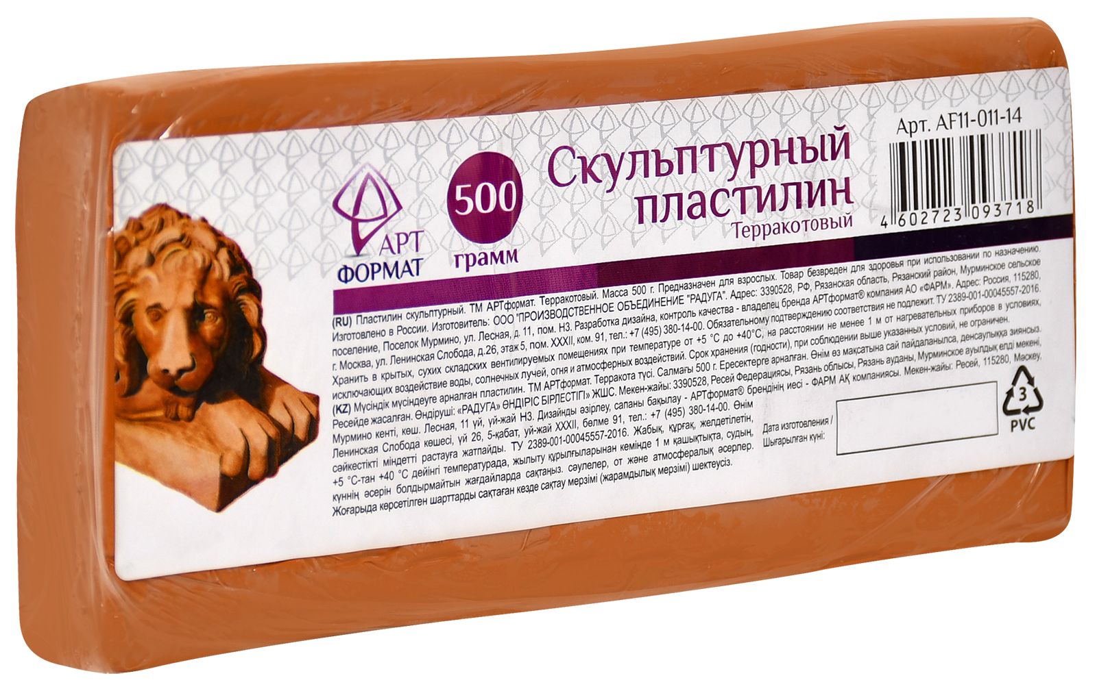 Цвет: терракотовый Количество цветов: 1 Упаковка: пакет Вид материала для творчества: Пластилин скульптурный Вес, г: 500 Торговая марка: АРТформат Мин. партия и варианты упаковок: 1 / 12 -