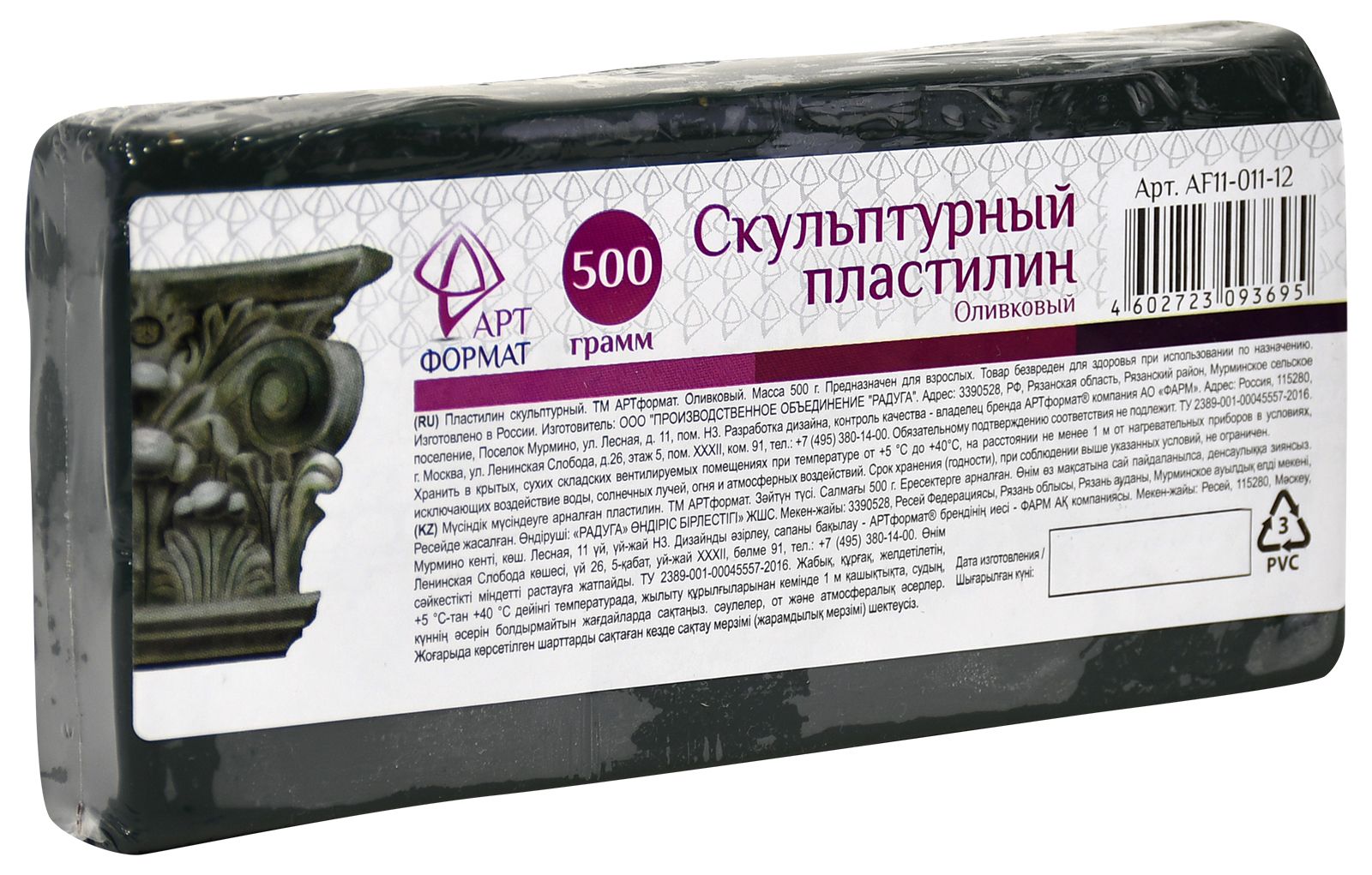 Цвет: оливковый Количество цветов: 1 Упаковка: пакет Вид материала для творчества: Пластилин скульптурный Вес, г: 500 Торговая марка: АРТформат Мин. партия и варианты упаковок: 1 / 12 -
