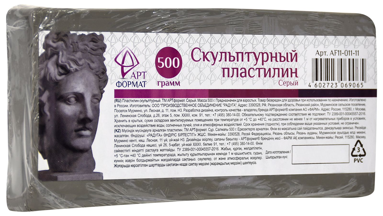 Цвет: серый Количество цветов: 1 Упаковка: пакет Вид материала для творчества: Пластилин скульптурный Вес, г: 500 Торговая марка: АРТформат Мин. партия и варианты упаковок: 1 / 12 -