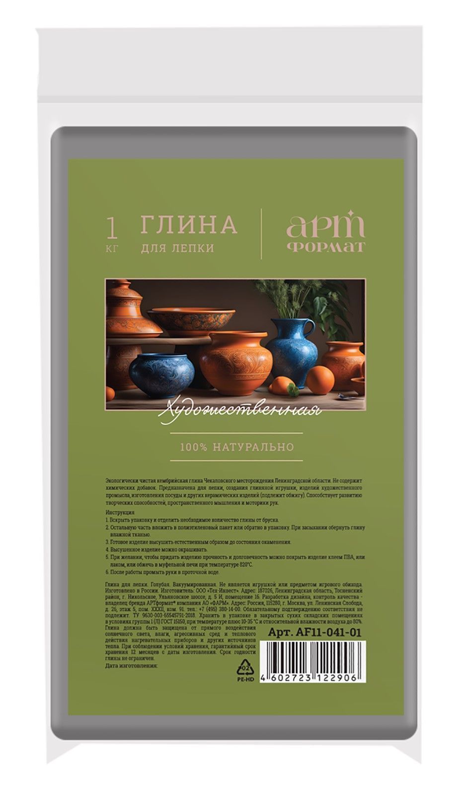 Натуральная экологически чистая голубая глина полностью готова к использованию. Не содержит химических добавок.