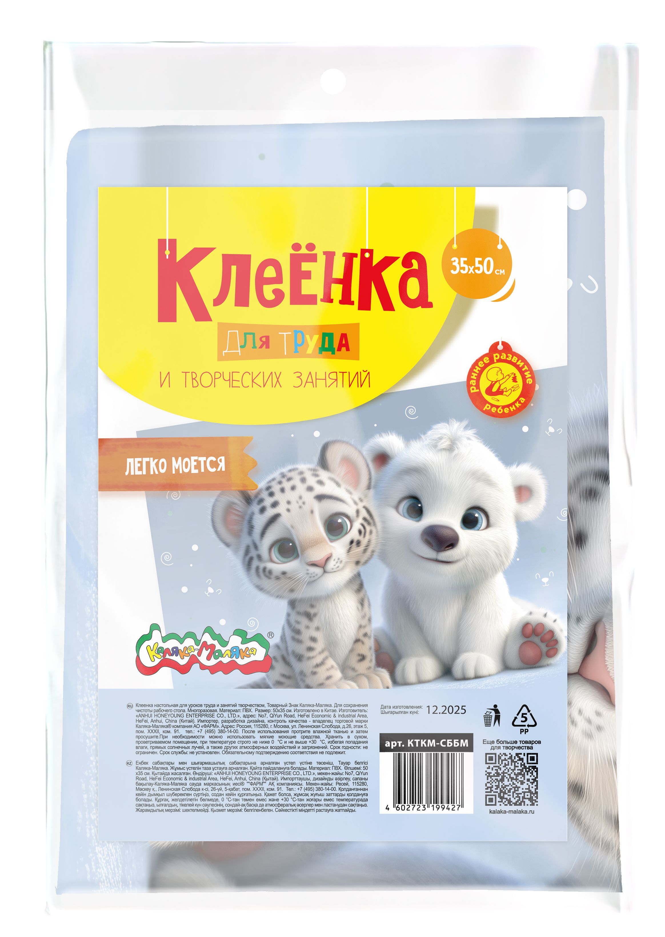 Толщина, мкм: 150 Упаковка: пакет с европодвесом Материал: ПВХ Пол ребенка: универсальный Серия: СНЕЖНЫЙ БАРС И БЕЛЫЙ МИШКА Цвет основной: серый Мин. партия и варианты упаковок: 1 / 50 / 500 Клеенка для уроков труда Каляка-Маляка СНЕЖНЫЙ БАРС И БЕЛЫЙ МИШКА 35х50 см ПВХ, серый, универсальная