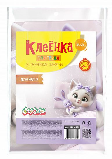 Клеенка Каляка-Маляка® МИЛАЯ КОШЕЧКА станет незаменимым помощником ребенка на уроках труда и поможет сохранить рабочее место в чистоте при работе с красками, клеем, пластилином и другими материалами.
