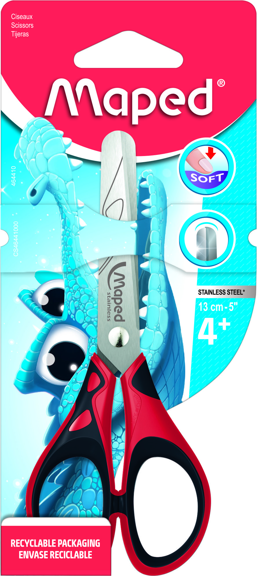 Цвет: черно-красный Наличие фиксатора: Нет Наличие европодвеса: Нет Упаковка: картонная упаковка Серия: ESSENTIALS SOFT Подходит для левшей: Нет Мин. партия и варианты упаковок: 1 / 24 / 480 Ножницы школьные MAPED ESSENTIALS SOFT безопасные 130 мм, эргономичные ручки пластиковые с резиновыми вставками черно-красные с принтом