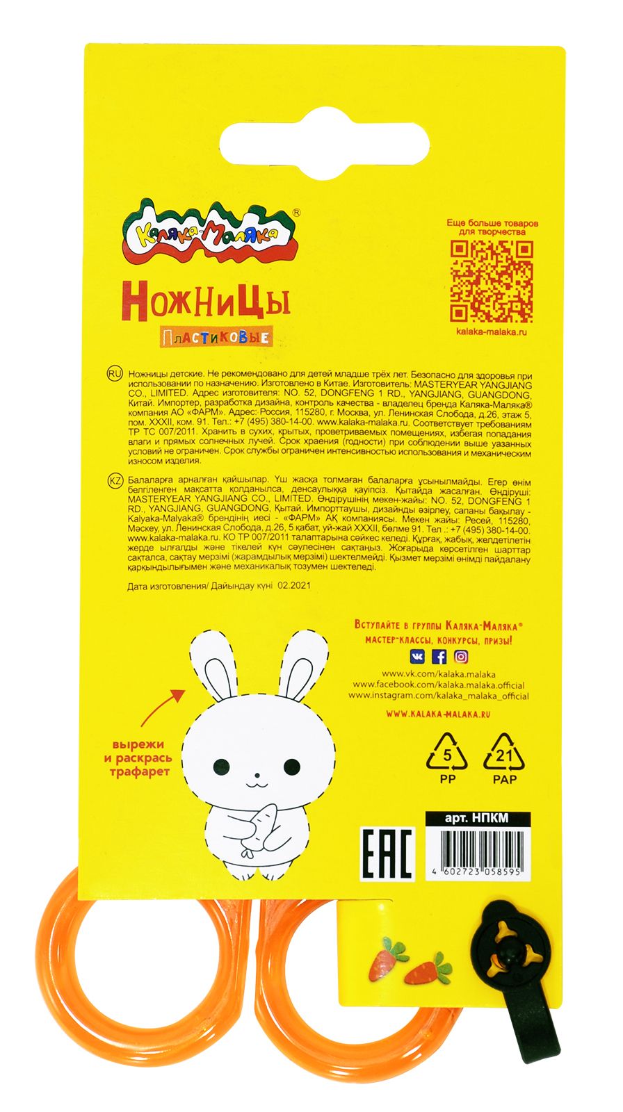 Цвет: оранжевый Наличие фиксатора: Нет Наличие европодвеса: Да Упаковка: картонная упаковка Подходит для левшей: Нет Длина ножниц, мм: 125 Мин. партия и варианты упаковок: 1 / 12 / 240 Ножницы детские Каляка-Маляка безопасные 125 мм, ручки пластиковые оранжевые