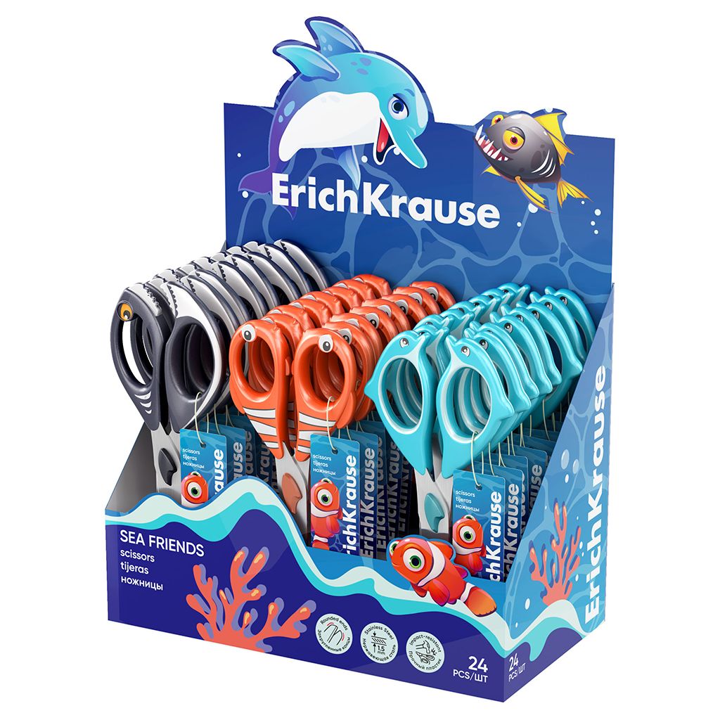 Цвет: ассорти Наличие фиксатора: Нет Наличие европодвеса: Нет Упаковка: дисплей Подходит для левшей: Нет Длина ножниц, мм: 145 Мин. партия и варианты упаковок: 1 / 24 / 240 Ножницы школьные ErichKrause безопасные 145 мм ручки из АБС пластика ассорти