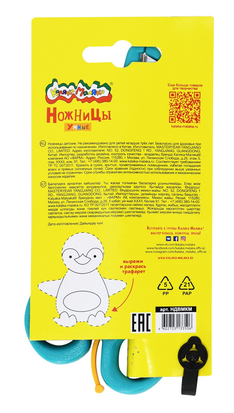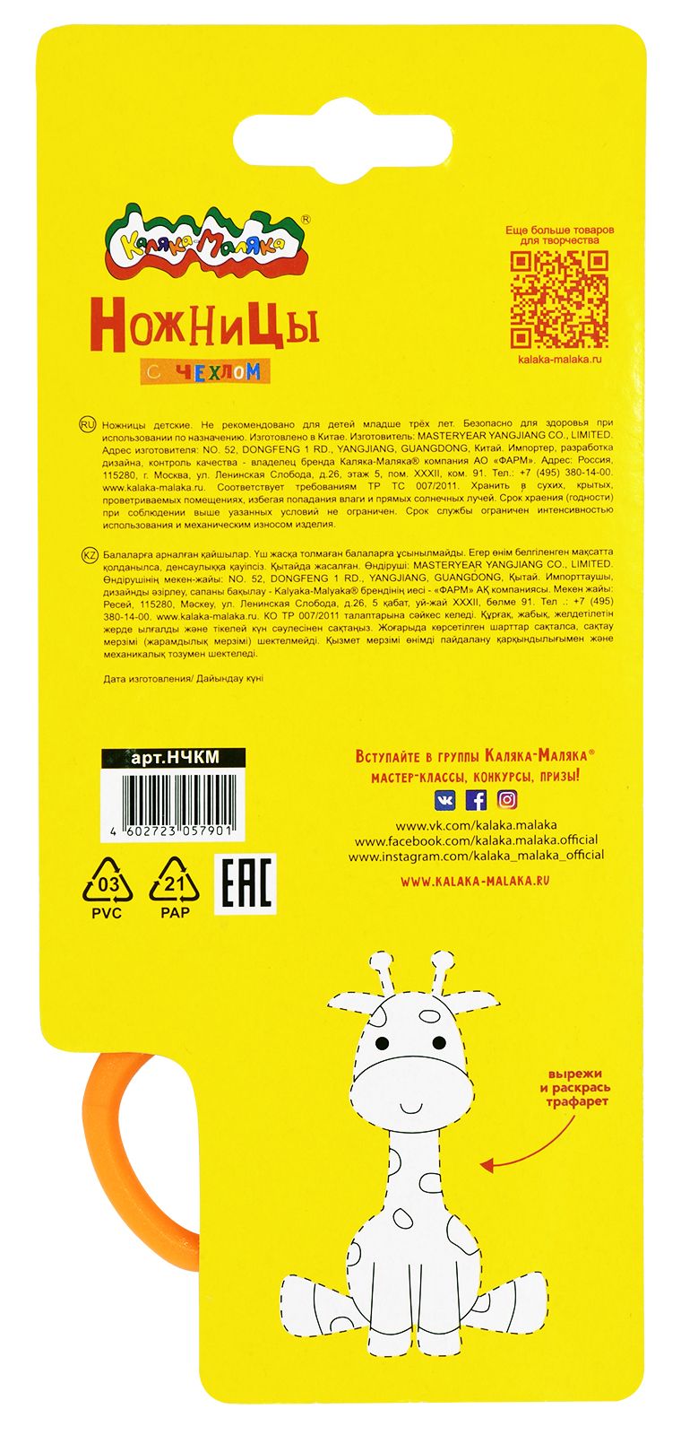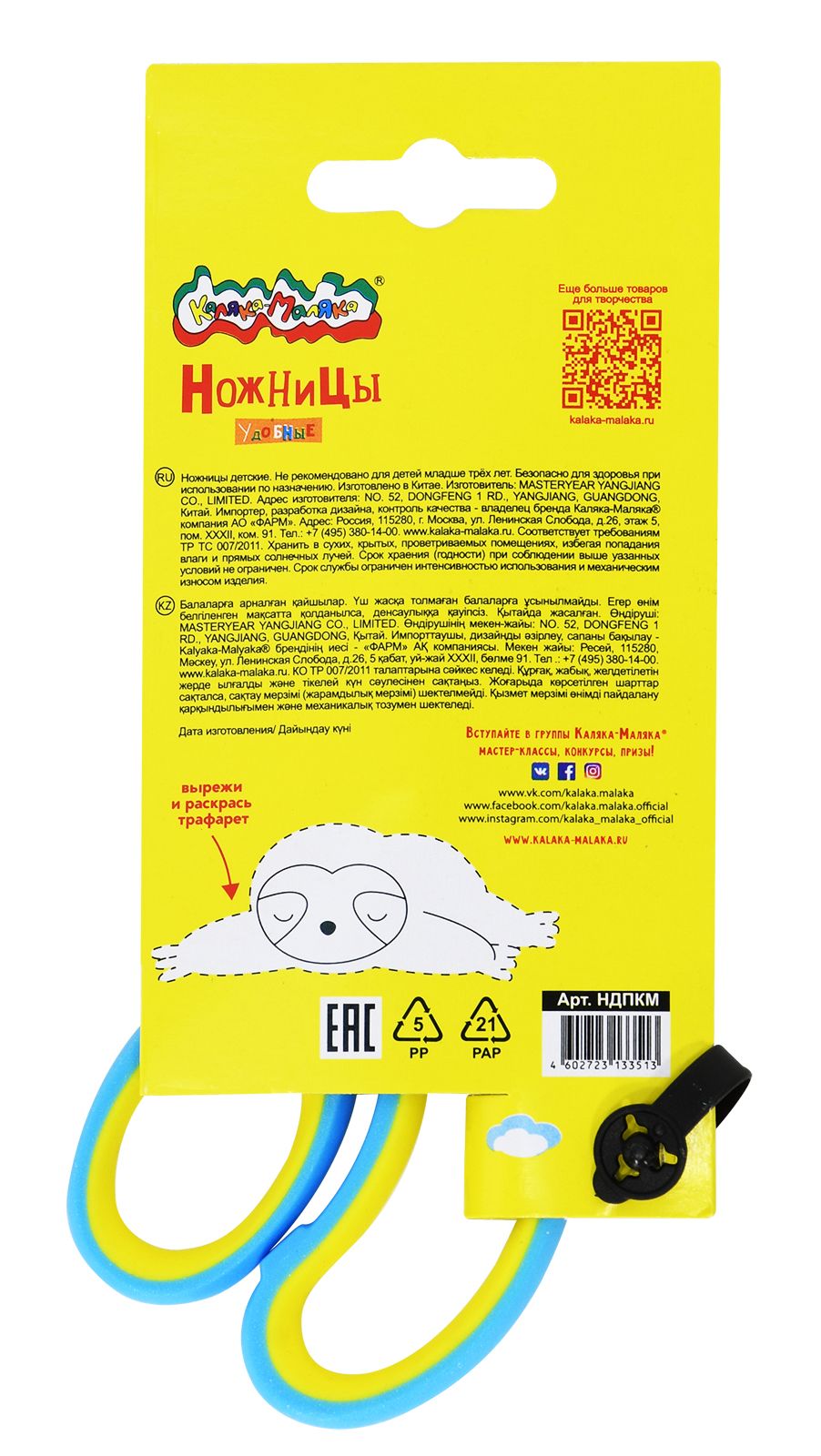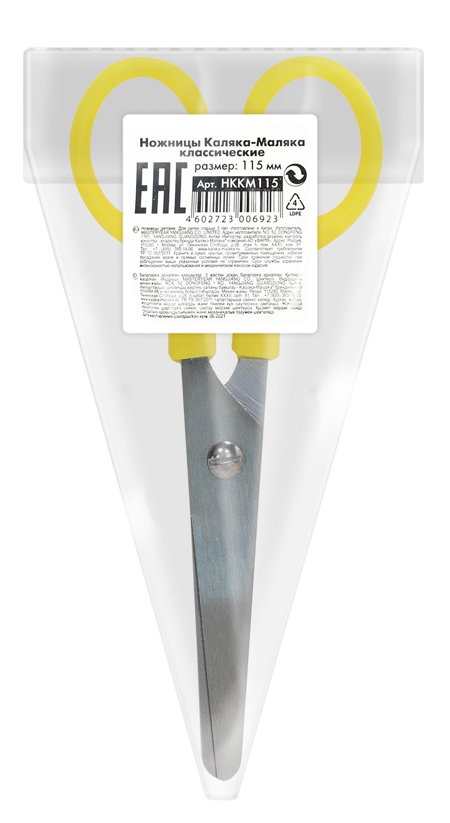 Цвет: желтый Наличие фиксатора: Нет Наличие европодвеса: Да Упаковка: картонная упаковка Подходит для левшей: Нет Длина ножниц, мм: 135 Мин. партия и варианты упаковок: 1 / 12 / 240 Ножницы детские Каляка-Маляка безопасные 135 мм, эргономичные ручки пластиковые с резиновыми вставками желтые с принтом на лезвиях