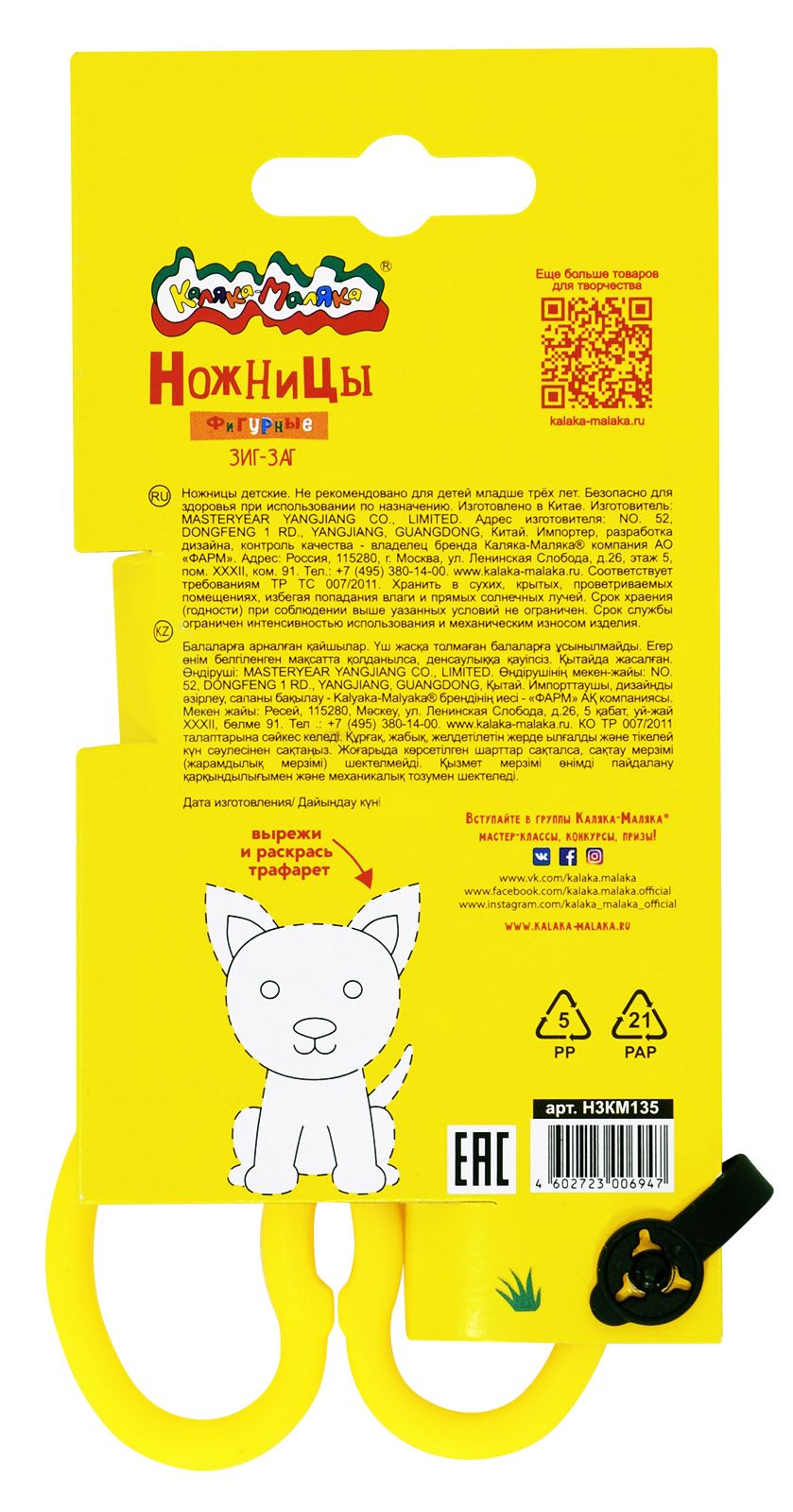 Цвет: желтый Наличие фиксатора: Нет Наличие европодвеса: Да Упаковка: картонная упаковка Подходит для левшей: Нет Длина ножниц, мм: 135 Мин. партия и варианты упаковок: 1 / 12 / 240 Ножницы детские Каляка-Маляка безопасные 135 мм, ручки пластиковые желтые, лезвия фигурные (зигзаг) металл+пластик