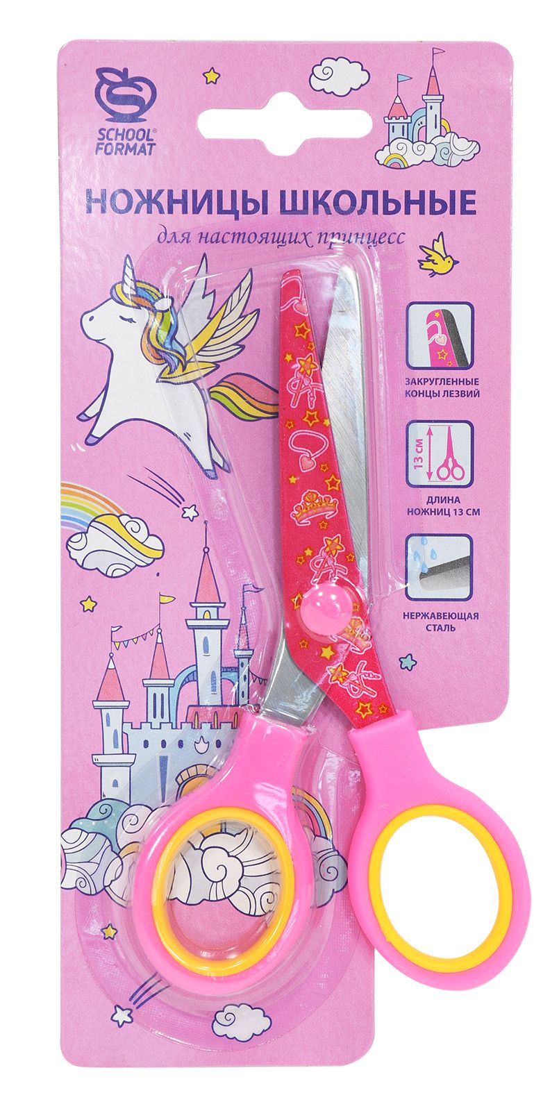 Цвет: розовый Наличие фиксатора: Нет Наличие европодвеса: Да Упаковка: блистер Серия: ПРИНЦЕССА Подходит для левшей: Нет Мин. партия и варианты упаковок: 1 / 12 / 240 Ножницы школьные Schoolformat ПРИНЦЕССА безопасные 130 мм, ручки пластиковые с резиновыми вставками розовые с принтом на лезвиях