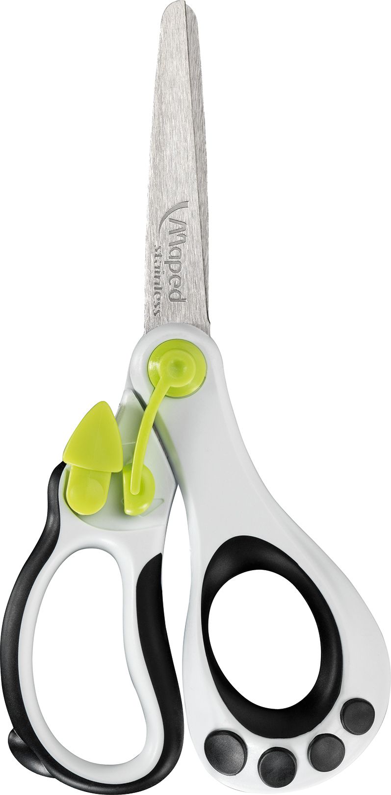 Цвет: черно-белый Наличие фиксатора: Нет Наличие европодвеса: Да Упаковка: картонная упаковка Серия: KOOPY Подходит для левшей: Нет Мин. партия и варианты упаковок: 1 / 12 / 144 Ножницы детские MAPED KOOPY безопасные 130 мм, эргономичные ручки пластиковые черно-белые с усилителем