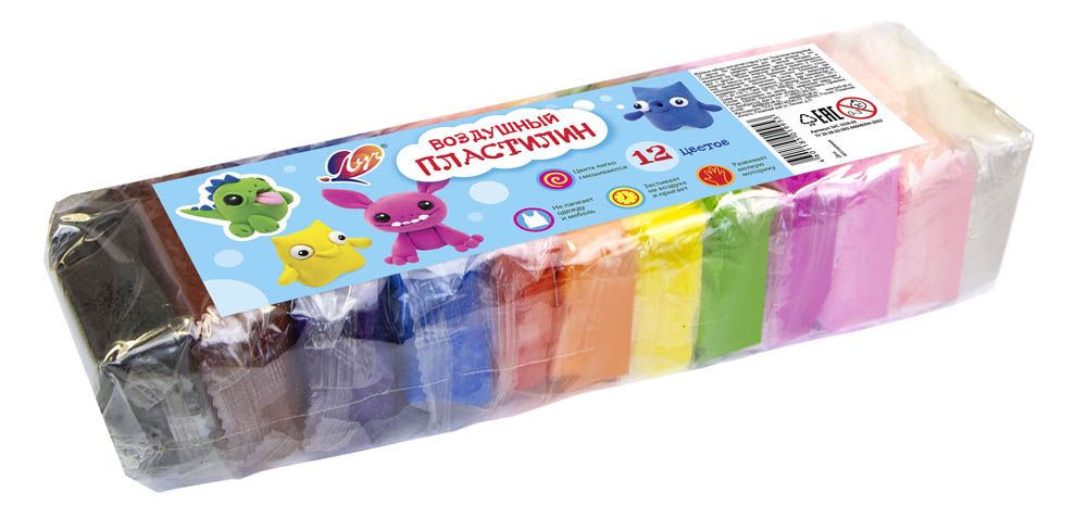 Цвет: ассорти Вес, г: 120,00 Количество цветов: 12 Наличие европодвеса: Нет Возраст: от 3 лет Вид пластилина: Пластилин воздушный Мин. партия и варианты упаковок: 1 / 30 -