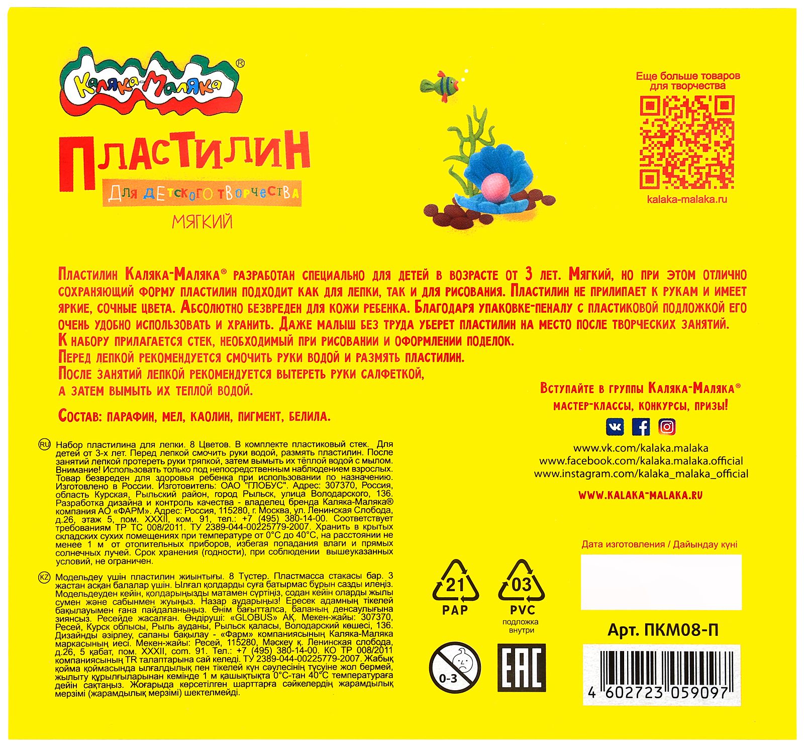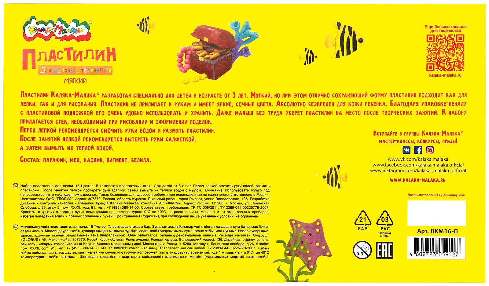 Цвет: ассорти Количество цветов: 16 Наличие европодвеса: Нет Упаковка: картонная упаковка с коррексной подложкой Наличие стека: со стеком Серия: ДЛЯ ДЕТСКОГО ТВОРЧЕСТВА Мин. партия и варианты упаковок: 1 / 10 Пластилин мягкий Каляка-Маляка ДЛЯ ДЕТСКОГО ТВОРЧЕСТВА 16 цветов 240 г ассорти, со стеком