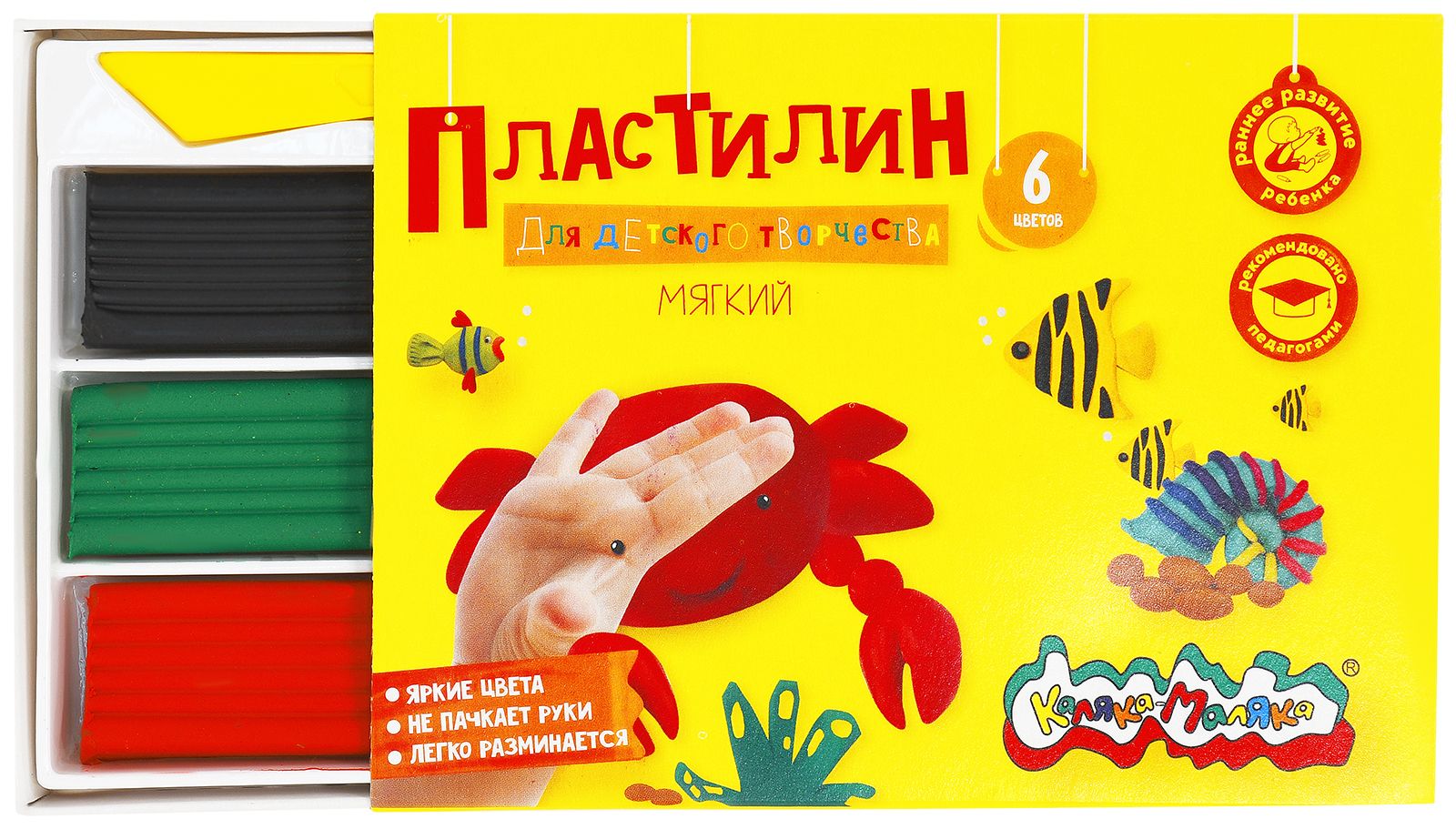 Цвет: ассорти Количество цветов: 6 Наличие европодвеса: Нет Упаковка: картонная упаковка с коррексной подложкой Наличие стека: со стеком Серия: ДЛЯ ДЕТСКОГО ТВОРЧЕСТВА Мин. партия и варианты упаковок: 1 / 30 Пластилин мягкий Каляка-Маляка ДЛЯ ДЕТСКОГО ТВОРЧЕСТВА 6 цветов 90 г ассорти, со стеком