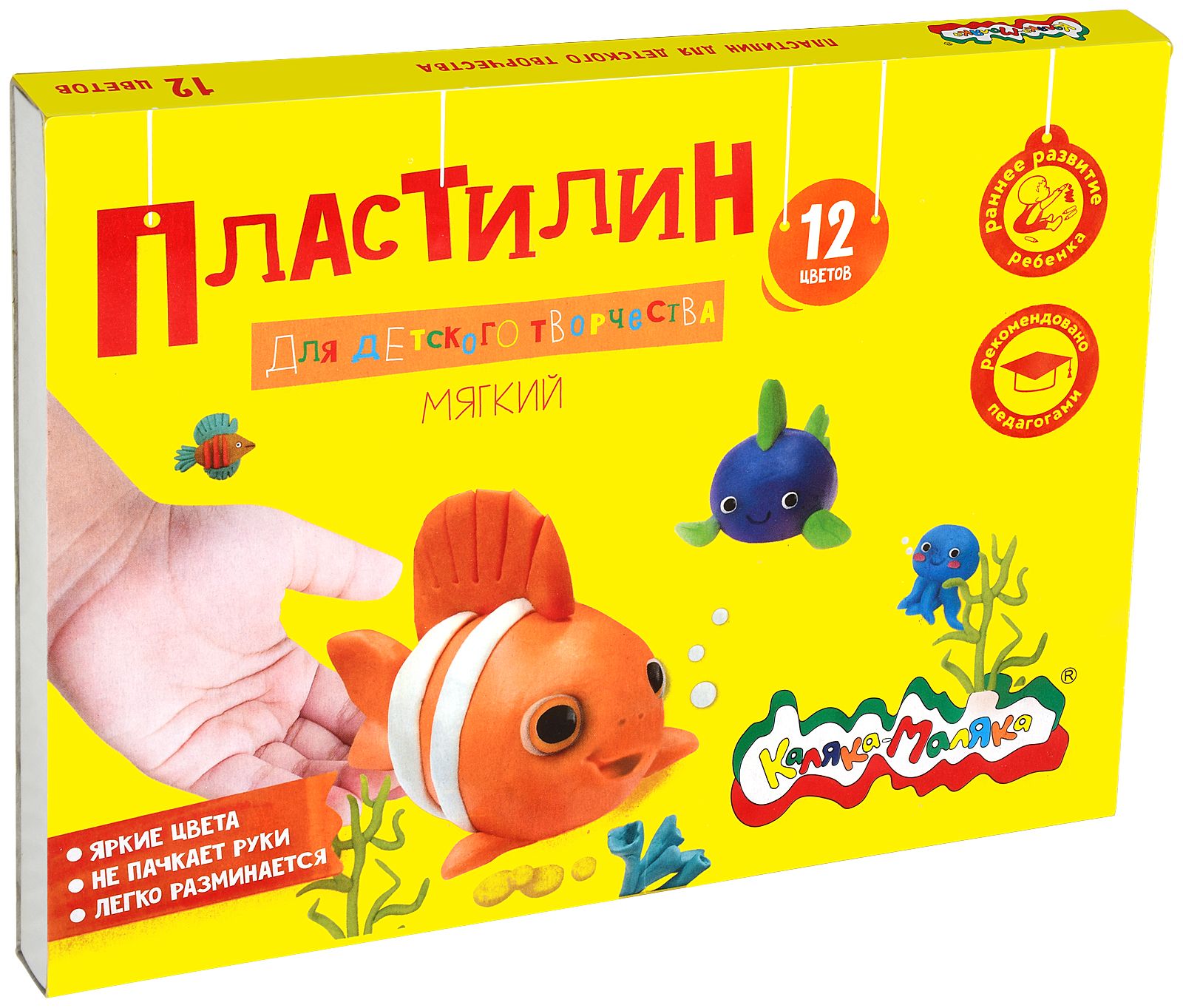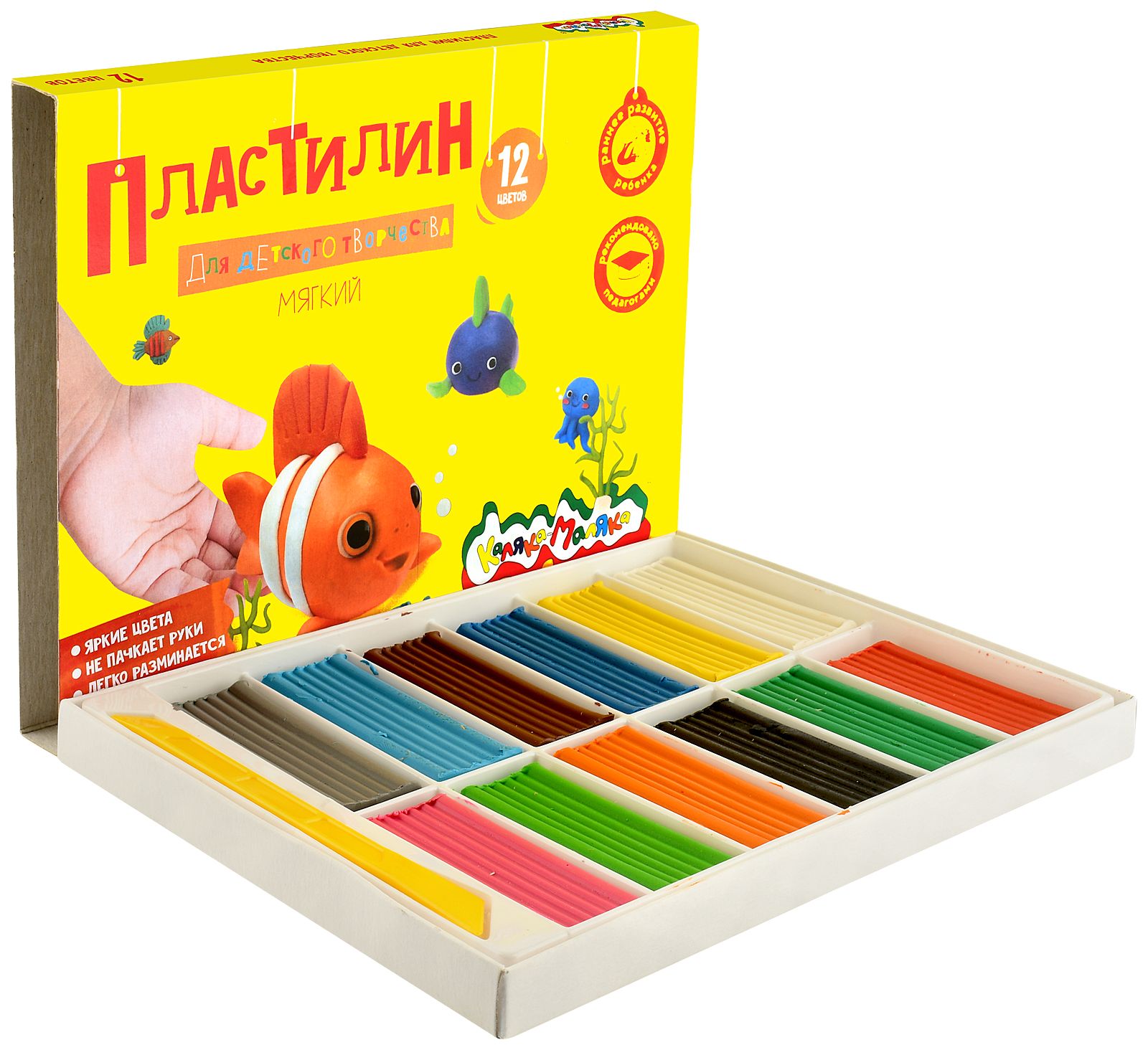 Цвет: ассорти Количество цветов: 12 Наличие европодвеса: Нет Упаковка: картонная упаковка Наличие стека: со стеком Набор: Да Мин. партия и варианты упаковок: 1 / 16 Пластилин Каляка-Маляка 12 цветов 240 г ассорти, со стеком