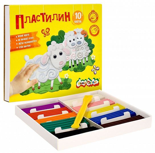 Цвет: ассорти Количество цветов: 10 Наличие европодвеса: Нет Упаковка: картонная упаковка Наличие стека: со стеком Набор: Да Мин. партия и варианты упаковок: 1 / 38 Пластилин Каляка-Маляка 10 цветов 150 г ассорти, со стеком