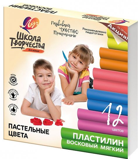 Цвет: ассорти Количество цветов: 12 Наличие европодвеса: Нет Спецэффекты: пастель Упаковка: картонная упаковка Наличие стека: со стеком Мин. партия и варианты упаковок: 1 / 20 Пластилин восковой Луч ШКОЛА ТВОРЧЕСТВА 12 цветов пастель 180 г ассорти, со стеком