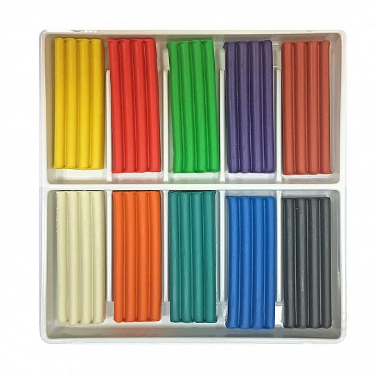 Без выраженного запаха, не липнет к рукам. Выпускается в картонной коробке без стека 6, 8, 10, 12, 16, 24 и 30 цветов.