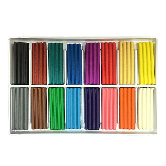 Без выраженного запаха, не липнет к рукам. Выпускается в картонной коробке без стека 6, 8, 10, 12, 16, 24 и 30 цветов.