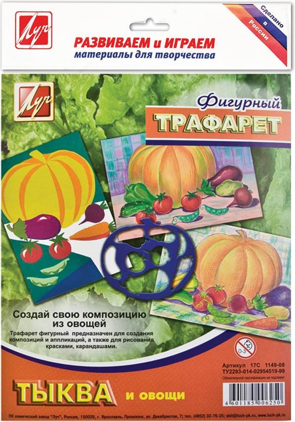 Трафарет контурный фигурный Луч ТЫКВА И ОВОЩИ 165х200 мм пластик