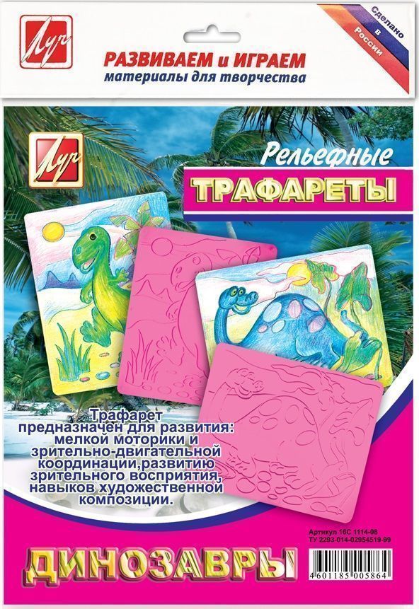 Трафарет рельефный Луч ДИНОЗАВРЫ 165х205 мм пластик