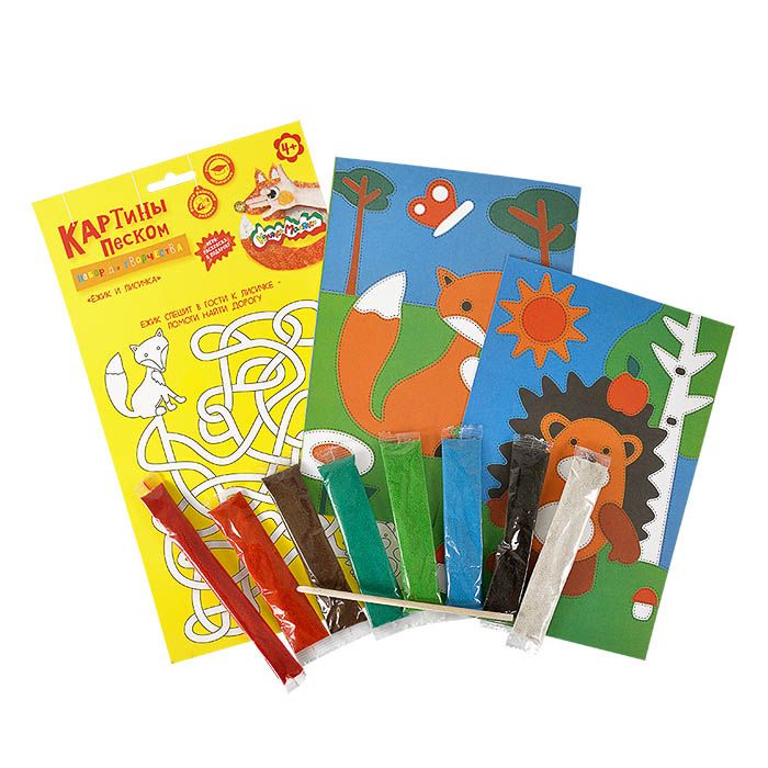 Формат: А5 Спецэффекты: металлик Вид материала для творчества: Набор для творчества Вид набора для творчества: картина из песка Мин. партия и варианты упаковок: 1 / 20 / 60 Набор для творчества картина из песка Каляка-Маляка ЁЖИК И ЛИСИЧКА 2 картины А5, 4+