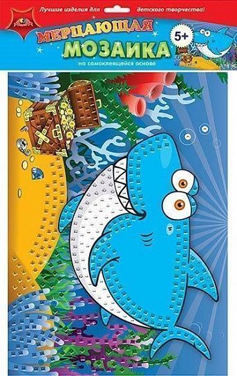 Вид материала для творчества: Набор для творчества Мин. партия и варианты упаковок: 1 / 50 Самокл. мерцающая мозаика АКУЛА мягкий пластик А3
