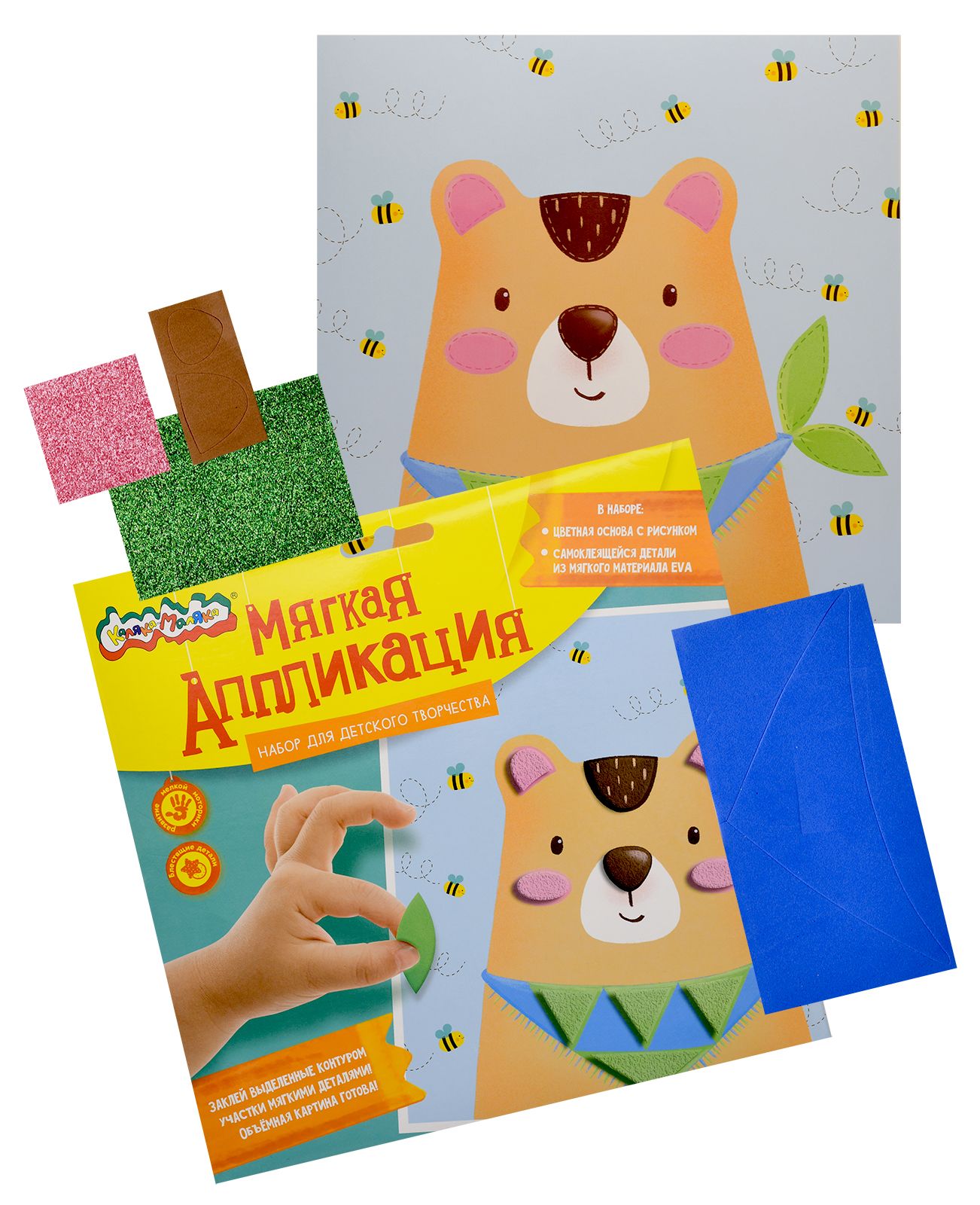 Вид материала для творчества: Аппликация Мин. партия и варианты упаковок: 1 / 100 Аппликация мягкая ЭВА Каляка-Маляка МИШКА 20х20 см 3+