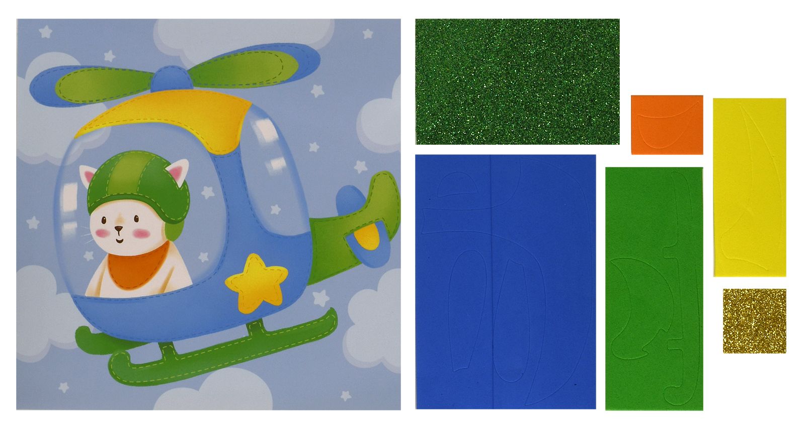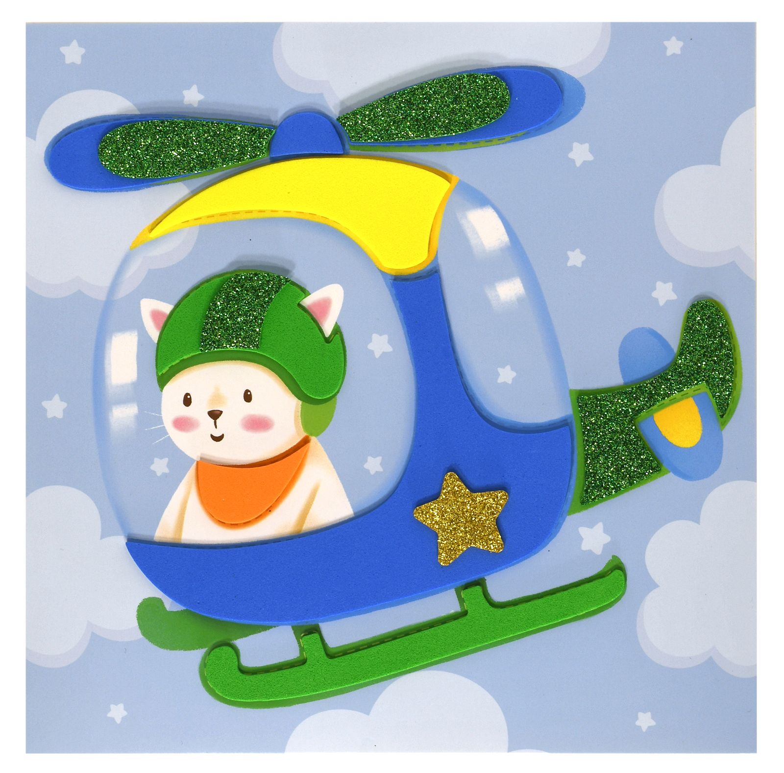 Вид материала для творчества: Аппликация Мин. партия и варианты упаковок: 1 / 100 Аппликация мягкая Каляка-Маляка КОТИК НА ВЕРТОЛЁТЕ 20х20 см 3+
