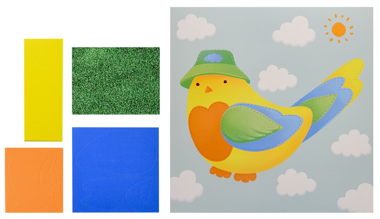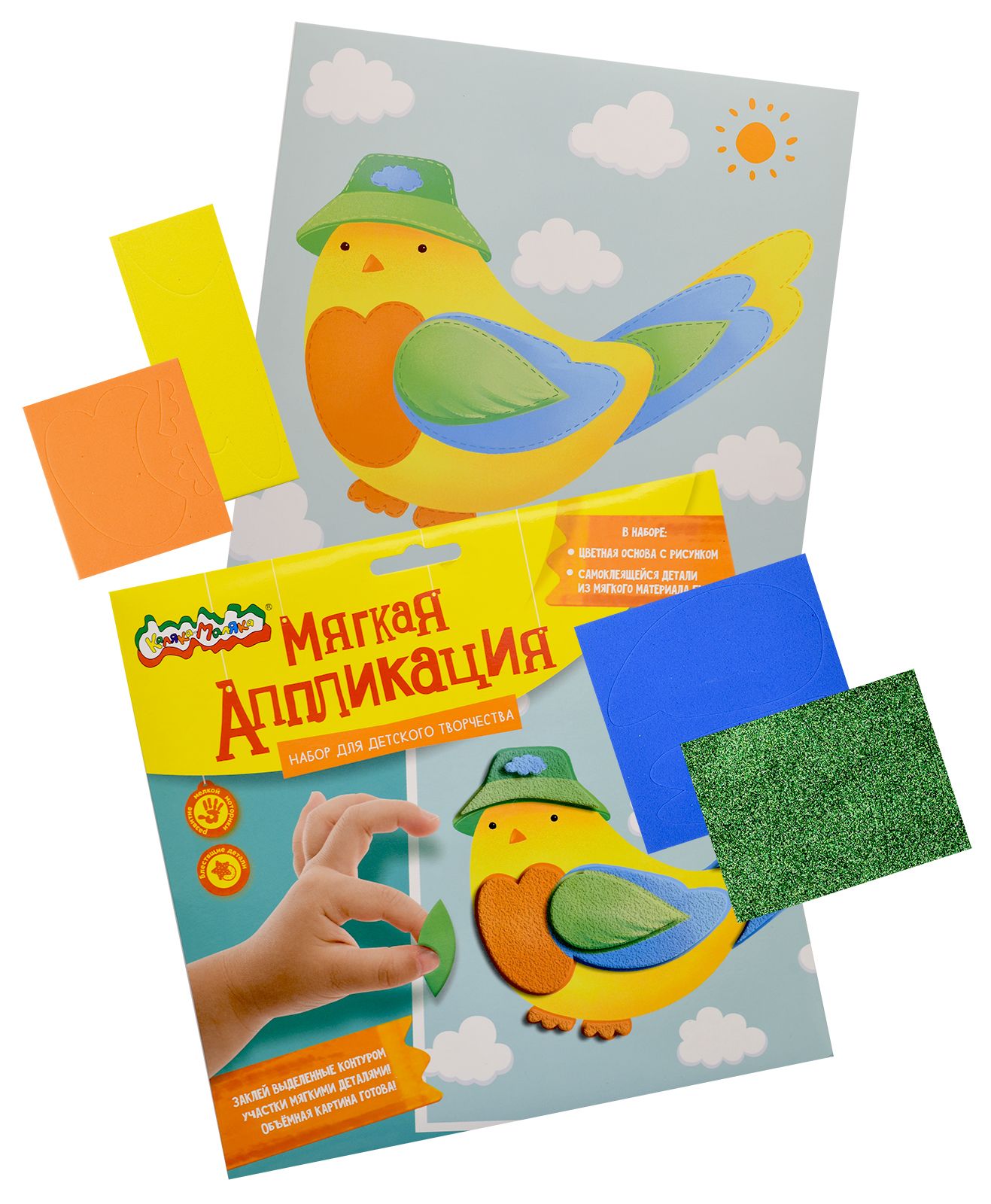 Вид материала для творчества: Аппликация Мин. партия и варианты упаковок: 1 / 100 Аппликация мягкая ЭВА Каляка-Маляка ПТИЧКА 20х20 см 3+